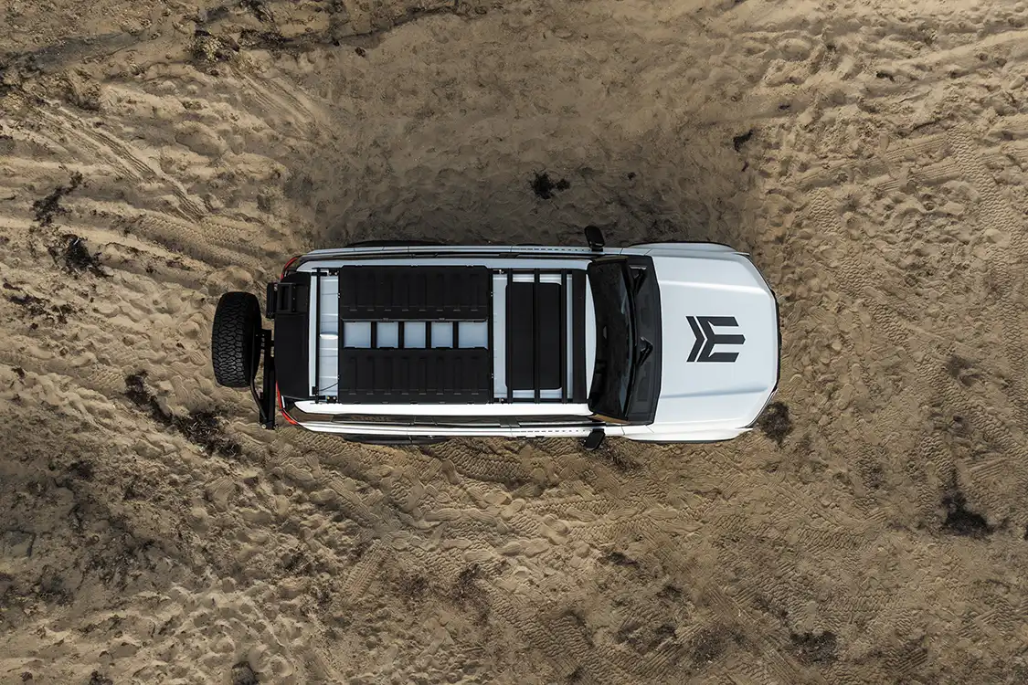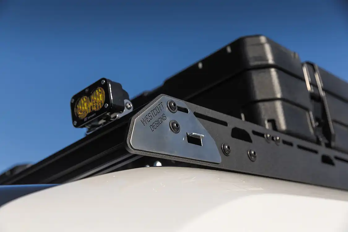 Storage is key when you’re off-grid, and Westcott Designs helped maximize cargo hauling with a roof rack, spare tire rack, and ladder. These additions allow for easy access to essential gear, while Roam 83L rugged cases provide additional enclosed storage, which keep everything organized and protected from the elements.