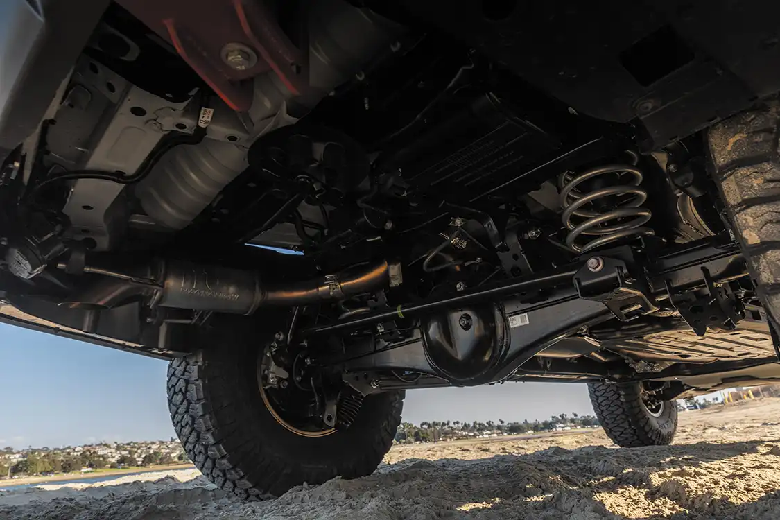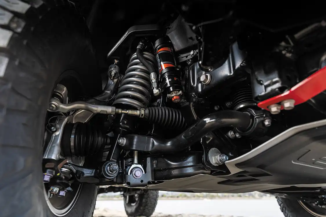 The Bink GX550 wasn’t built just to look good—it had to perform. The first step was dialing in the suspension to handle both rocky trails and long highway miles. A Fox Performance Elite 2.5-inch DSC Evo setup paired with Eibach rear coils gives the GX the clearance and ride quality needed for unpredictable terrain. Whether navigating technical rock climbs or stretching out miles of washboard roads, this setup ensures a smooth yet responsive ride.