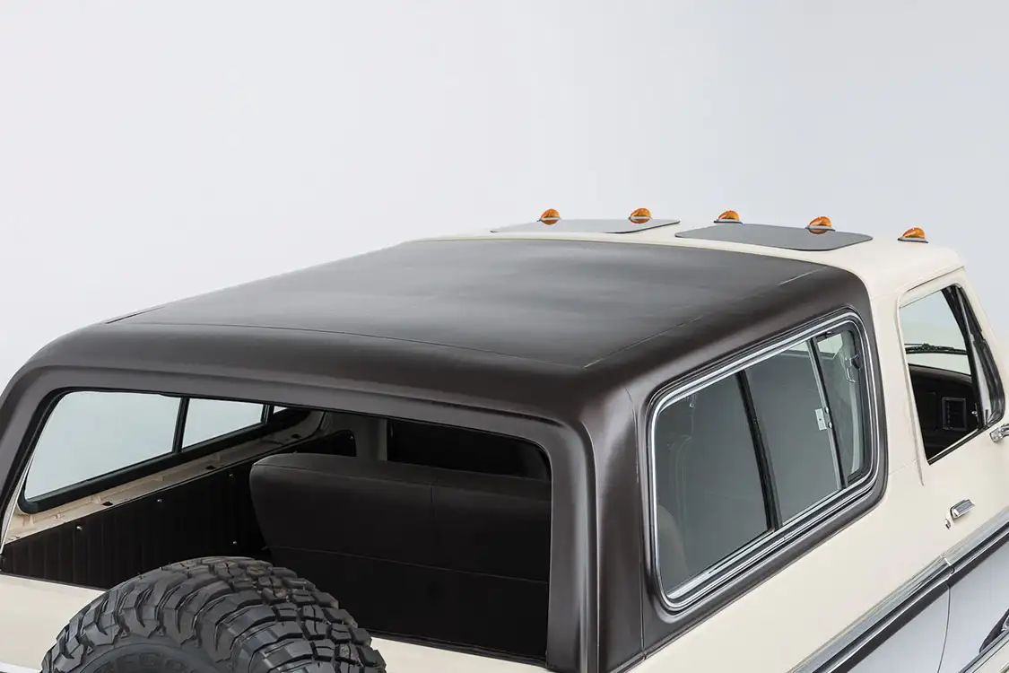 As Adam mentioned, the Bronco’s paint and bodywork were already well taken care of when it crossed his path. It’s obvious that someone else out there fully appreciated the ’78 original aesthetic, but there were a few extras tacked onto its profile. The cab clearance lights add a nice touch of flair to the front end, but one extra that might not get noticed right away is the dual sunroof area atop the cab. The square ports invite extra natural lighting inside the interior space, which is never a bad thing when cruising around on a bright, sunny day.