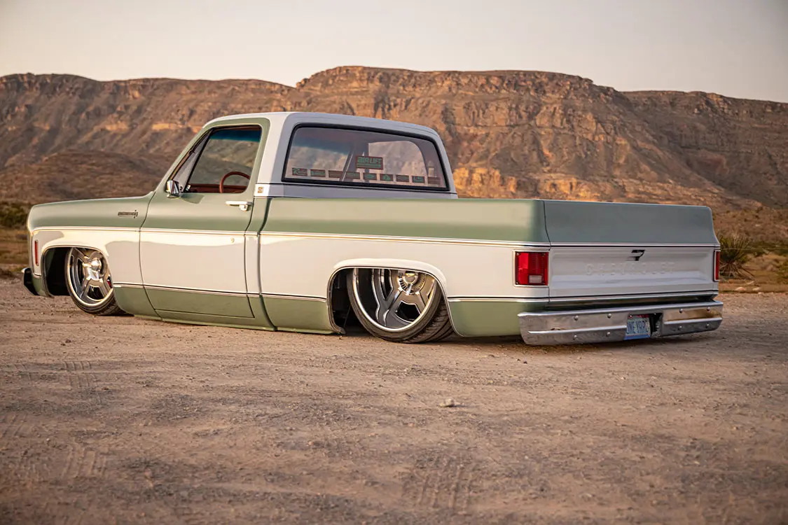 The entire suspension system is controlled by an Air Lift Performance 3H management system with added height sensors. The steering system on the truck also received an upgrade via the chassis’s included rack-and-pinion gearbox, which features flipped steering geometry meant specifically for slammed vehicles.