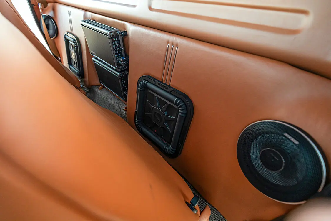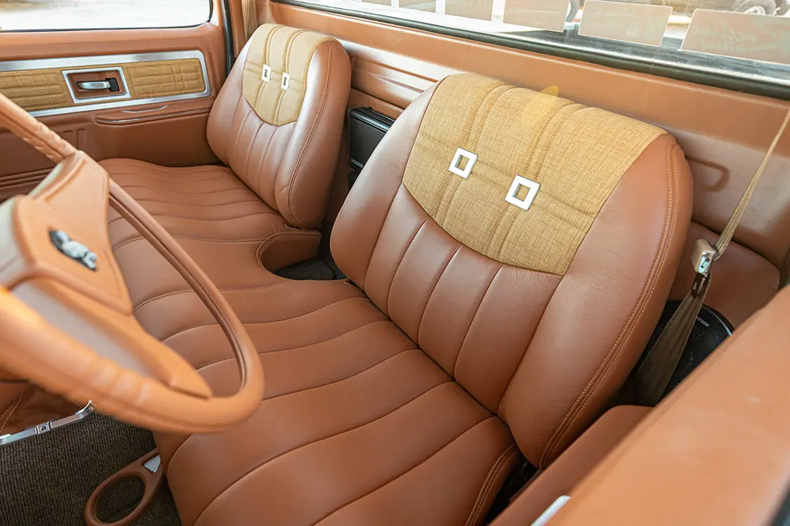 Fittingly, the interior of the truck is also custom while maintaining many of its vintage aesthetics. The seats are truly one of a kind, with the infrastructure for them being built out of salvaged materials by Bailey. They were then covered in Apex Leather thanks to the help of Trent VanArsdalen of Trent’s Trick Upholstery, who showed Bailey some of the ins and outs of custom auto upholstery while crafting her custom seat coverings. Matching door panels and dash, and complimentary-colored carpet complete the look, while an updated Kicker Audio system ensures Bailey can listen to her favorite tunes while cruising through the Ohio countryside.