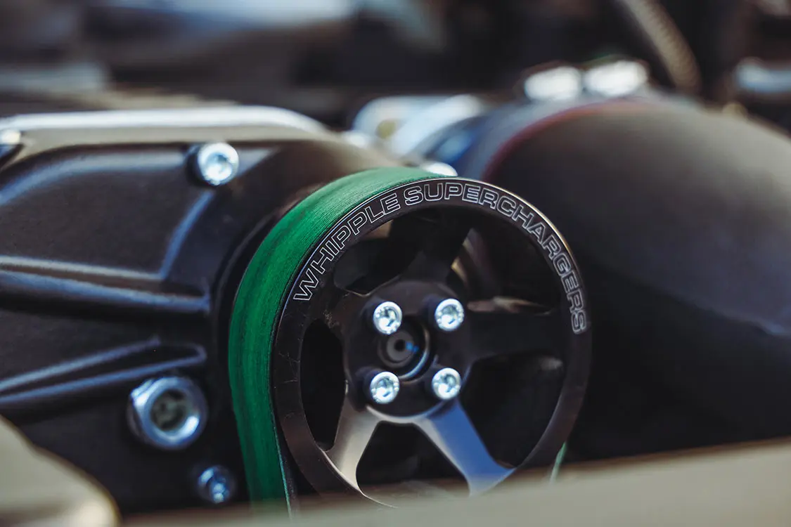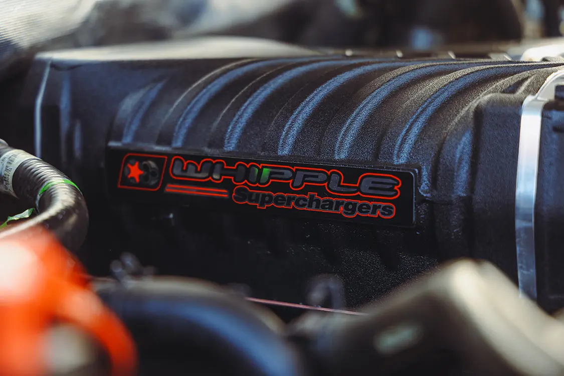 With aesthetics in place, it was time to enhance the truck’s performance. Brendan, in partnership with Whipple Superchargers, introduced a W175AX supercharger kit to the factory 2.9L engine. This addition not only unleashed the beast within, but it also elevated the truck’s power output to new heights. Complemented by Snake Eater Performance fuel injectors, the engine received the necessary fuel to match its enhanced airflow.