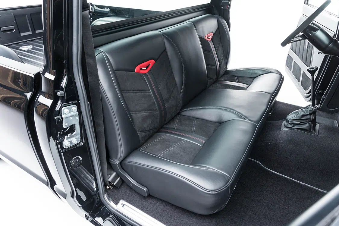 With the exterior, engine, and chassis turning out so clean, Brandon knew he had to give the interior the same level of love. The dash had some parts shaved and was modified for a cleaner look. The custom bench seat by McIver Custom Fab was frenched into the back of the cab while the headliner, dashpad, and door panels were custom built. All of the buttons were hidden while a phone charger, cup holders and a 4-inch sub make driving more comfortable.