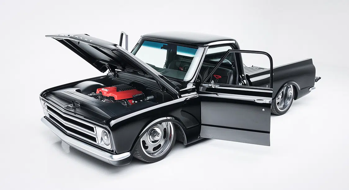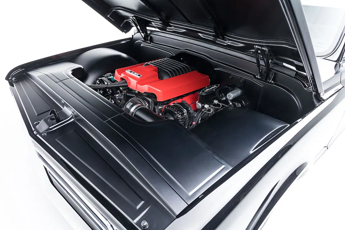 With the rolling chassis complete, it was time to find an engine to make the truck not only sound good but make it a blast to drive. For this, the original 1968 engine was scrapped, and a Chevrolet Performance LSA crate engine was added. Knowing a basic, out-of-the-box engine wouldn’t cut it with the new plans Brandon had for this truck, it received Brian Tooley pushrods, platinum springs, retainer, and cam kit. It also got some CTS-V Performance lifters, stage 3 LSA cam, 2-inch Ultimate headers, IFC 1050cc fuel injectors and a Holley oil pan. Controlling everything is a new BP wiring harness and an E85/flex fuel conversion. For most people, this level of performance would be more than enough, but not for Brandon. He also added a Kong Performance ported supercharger, Griptech 2.55-inch upper and DSX lower pulleys with an ATI harmonic balancer. There are two 255 Walbro fuel pumps with a DSX harness to turn the second pump on after 10lbs of boost. All engine work was handled by Brandon with the help of Jason Craig and Mark McIver while Powerlabs in Boise, Idaho handled the custom tune. All said and done, this C10 once planned to be a basic driver, now has 1000hp.