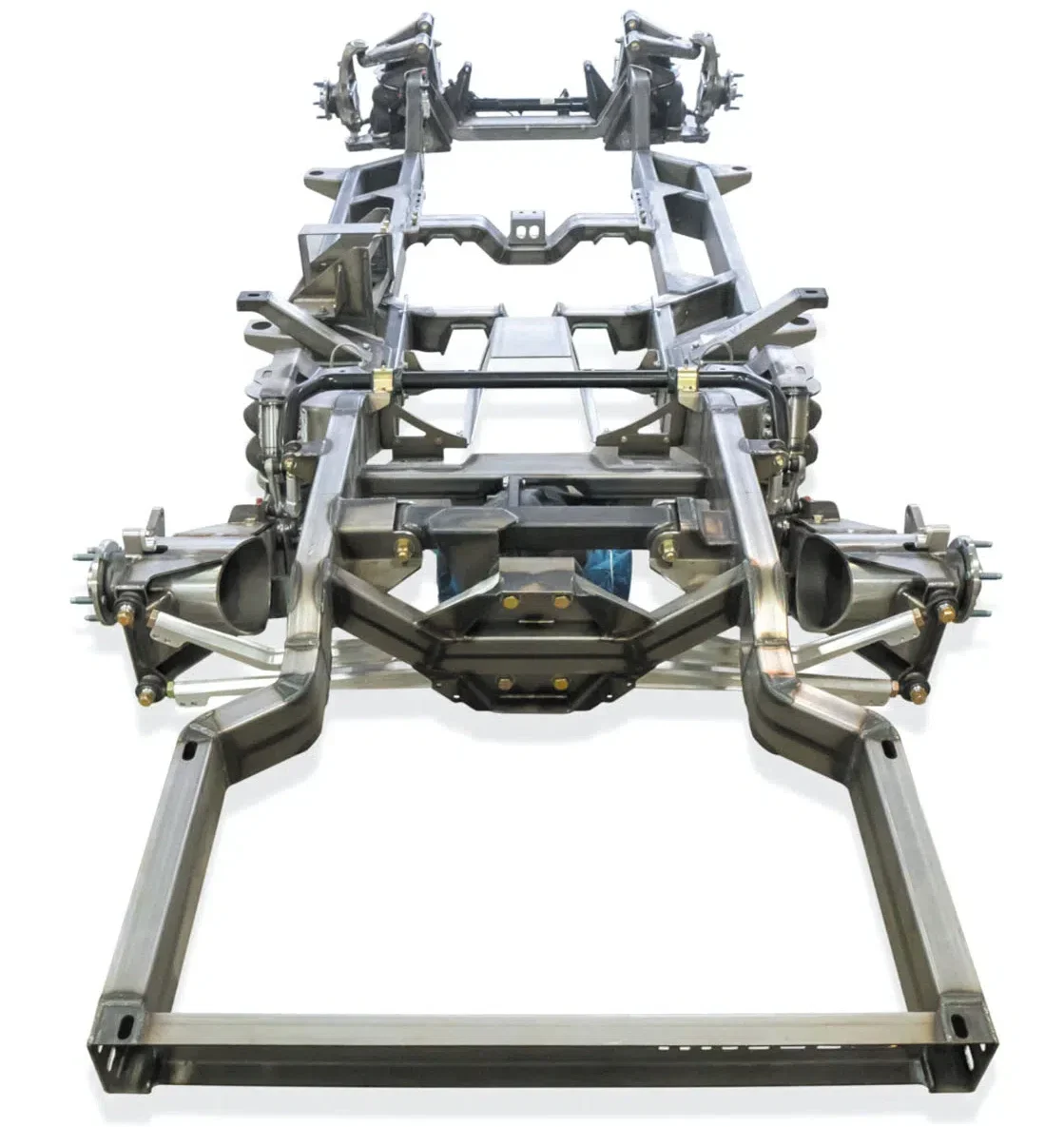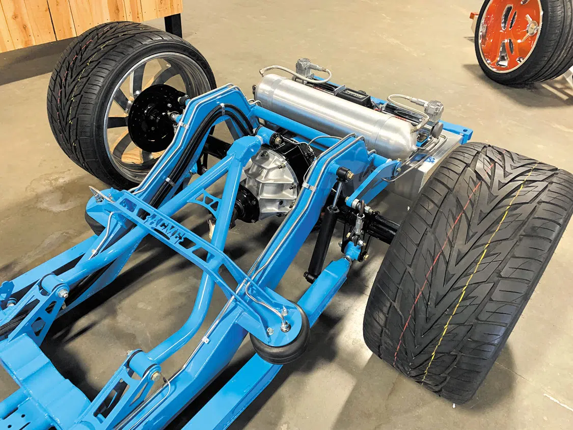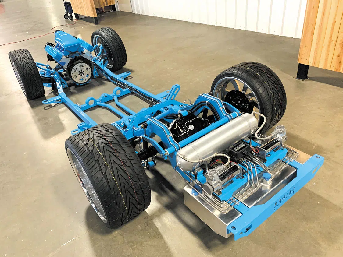 Whichever frame you choose, it can be ordered as an airbag or coilover chassis with an entry-level Stage I package that comes complete with a front bumper mount, body-dropped body mounts, tabs for motor mounts, crossmembers with integrated 3.5-inch exhaust ports, front 1.25 tubular control arms, and a parallel 4-link with Watt’s link. A laser-cut and CNC-bent 3/16 steel constructed front clip comes standard as does adjustable, bolt-on coilover mounts for the ultimate in customization.