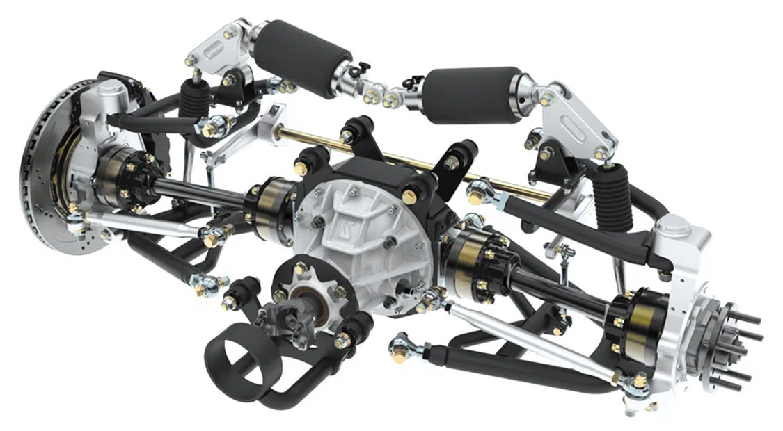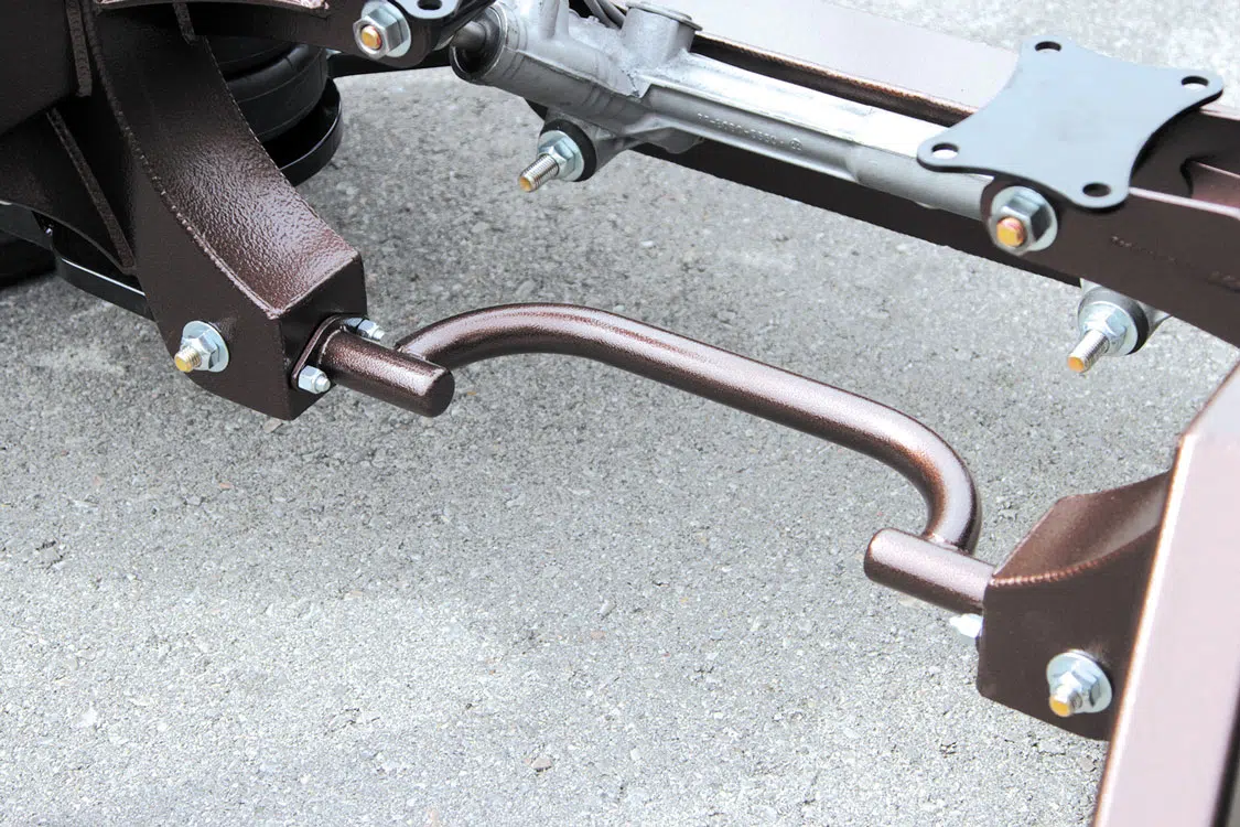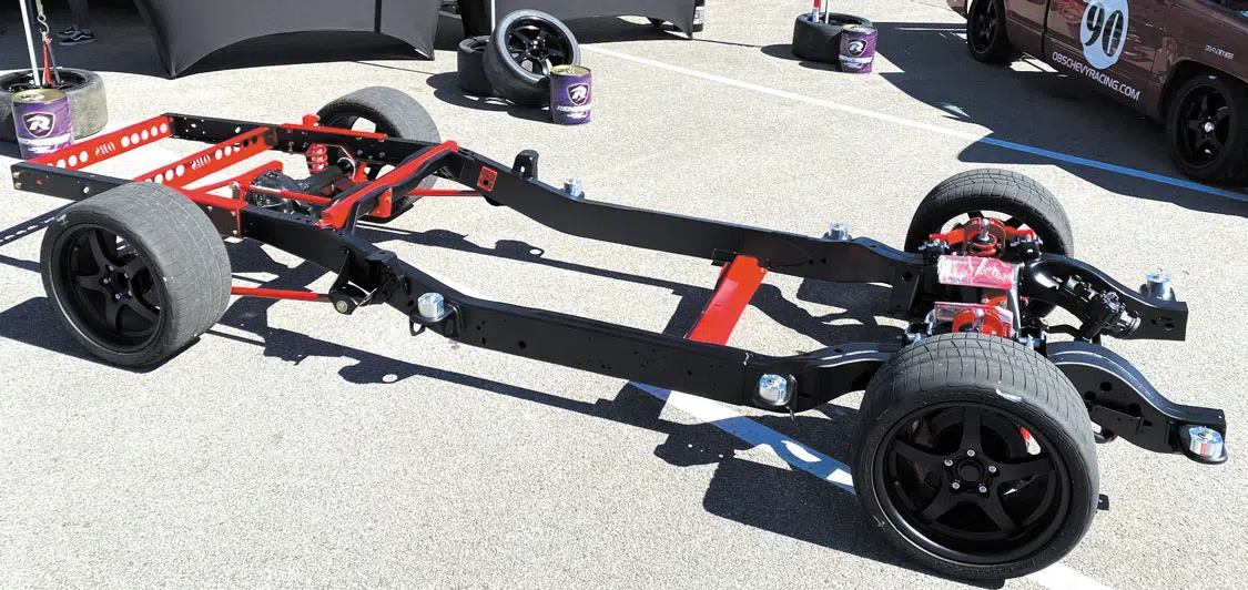 The Low-Pro chassis is more than a one-trick pony. It also features an industry-leading trailing arm IRS system, an OEM GM differential with an innovative link system that supports said trailing arm with ‘bag, and a cantilevered shock configuration. Experience excellent ride quality through the chassis’ excellent shock travel and valving, DOM mandrel-bent sway bars, and Roadster Shop’s new front suspension geometry that has been specifically designed for the OBS platform. Also, don’t worry about large wheel and tire combinations being able to fit—the frame has been blessed with accommodating front and rear track widths as well as a fully unrestricted steering angle to work with large-diameter hoops. All popular engine/transmission combos have also been considered with the design of this chassis.