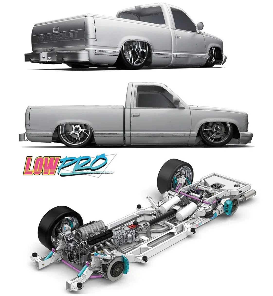 The guys at Roadster Shop understand the issue that OBS builders are facing in terms of complete chassis systems designed to make a C1500 look and perform great. Not only does its Low-Pro chassis promote a low slung, aggressive stance, but it also features a very important selling point in its ability to avoid having to raise the bed floor. This will allow the truck to fully lay out while saving time and labor involved in messing with the bed, which is a huge. Retaining that factory look and function is definitely something to consider while shopping around.