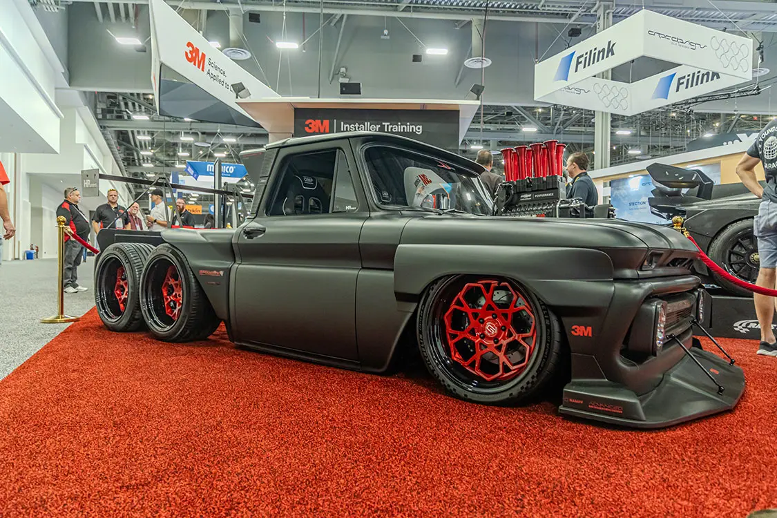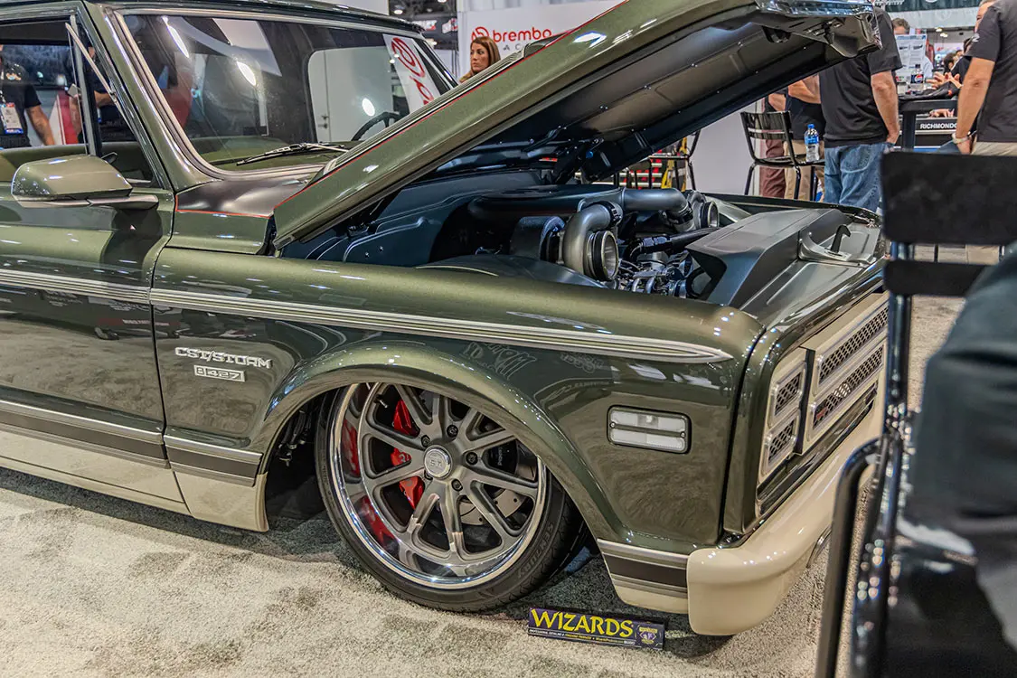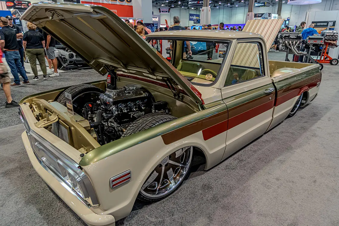 Sergeant Square wasn’t the only badass C10 to debut this year at the SEMA show either! There were a ton of gorgeous C10 builds throughout the halls and in company booths showing off the latest and greatest wares and workmanship. With so many to see, we captured the best of the best for you to drool over at home—as SEMA is a trade-only event (except for Friday, which is now open to the general public). So sit back and browse through our favorite discoveries, and head to Motortopia.com for extended coverage and more. See you at the next one!