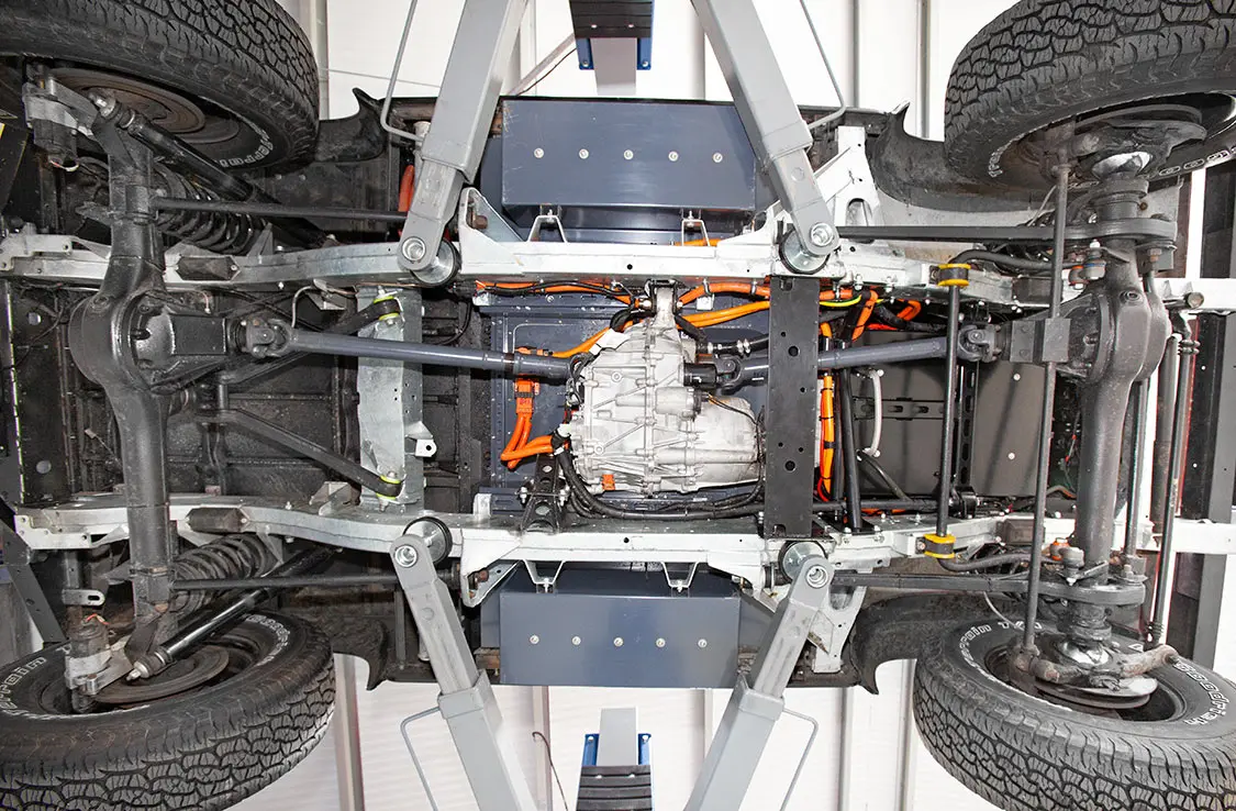 When  engineering this particular 90, the team opted for a brand-new galvanized chassis, which was not a requirement. In fact, several specialists in the UK and worldwide opted to focus solely on the system installation as long as the base vehicles are sound with a solid chassis. Some of them even perform the conversion in just one week, followed by a full week of testing.
