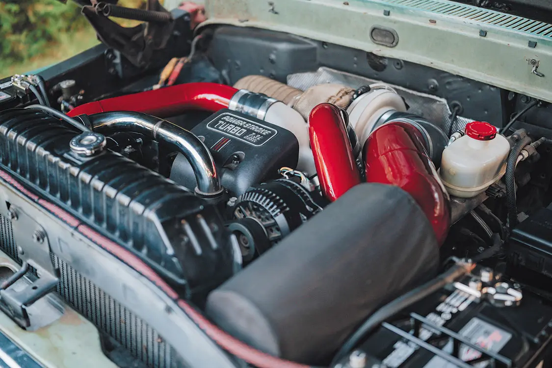 “You’d be surprised at how well these engines fit into these trucks,” Cody says. “This one is still sporting the original firewall and radiator from the 1972 truck, and it still had just enough room to use the 7.3 clutch fan for cooling, and it does great. Even all three original driveshafts were never lengthened or shortened; it was literally meant to be. I strongly agree that the ’97 engine is much easier to work on inside of the ’72 engine compartment. Everything is easily serviceable, which is great since I like to use this truck for trailer hauling during long road trips.”