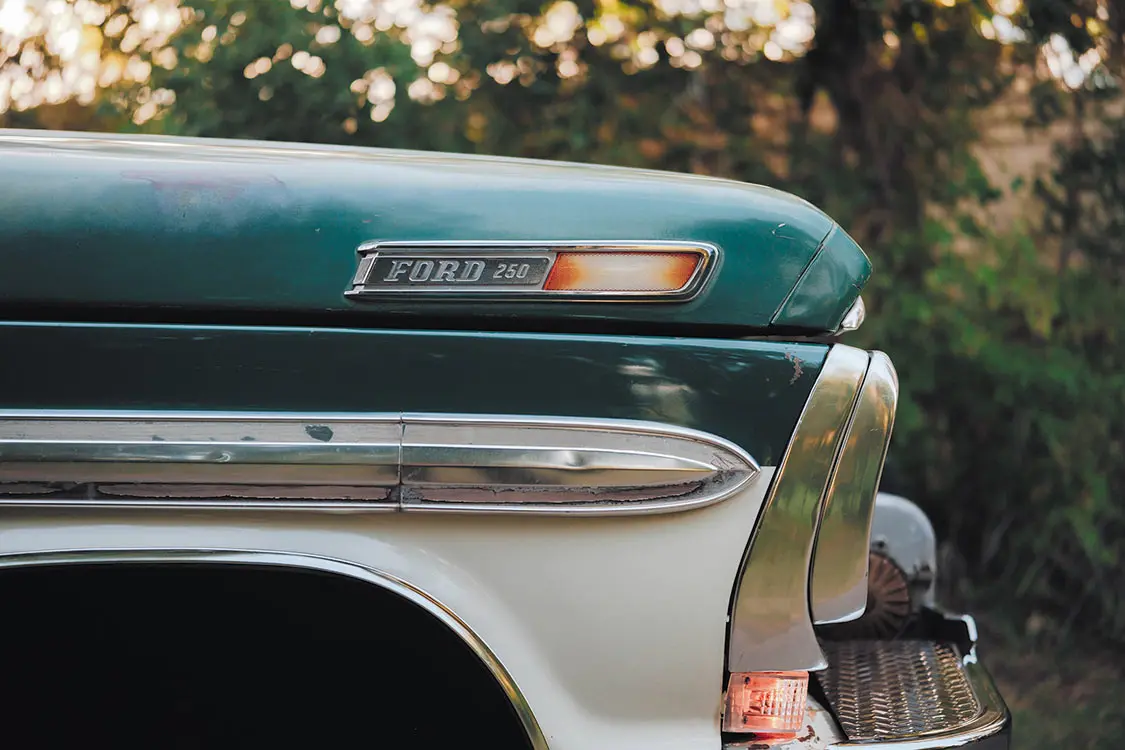 Looks-wise, this truck is a perfectly preserved driver. The original two-tone paint had only a very light patina on it from the start and has since been buffed and polished to release the oxidization from the factory luster. The Ranger XLT package the F-250 sports adds the right touch of utility to its façade, as does the capable all-around 4-inch lift with meaty STA tires. While all these attributes attached to Cody’s Ford pickup are attractive enough in their own right, it’s what lies underneath the hood that creates this truck’s main source of excitement and sheer desirability.