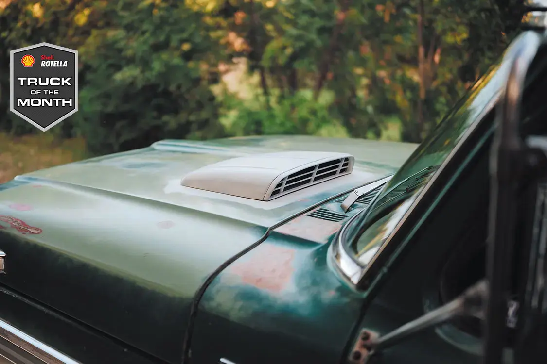 “My goal with this build was to keep it as close to ’70s period-correct style on the outside with a touch of contrasting ‘modern’ performance under the hood,” he states. “I think of it along the lines of a sleeper truck. I love when people walk by and peek at the engine and are surprised that it isn’t a traditional Cummins swap like most of these trucks tend to be.”