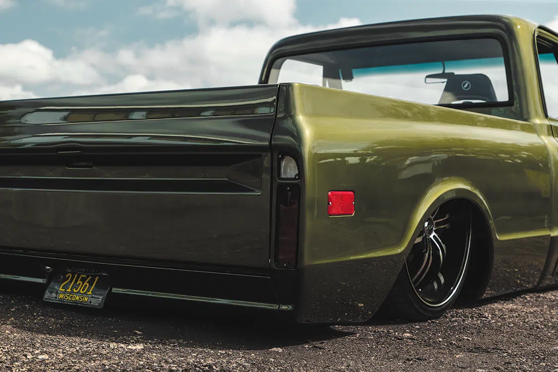 Finishing off the bed are a custom set of rear tubs as well as a tailgate filler panel that was built by Jayke Christenson at Atomic Armadillo Metal Fab in New London, WI.