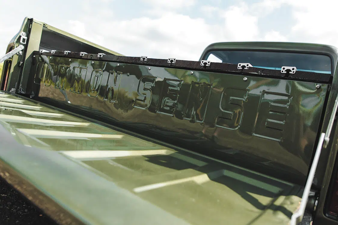 “The panel reads ‘Common Sense,’ which has become the name of the truck. I just think there is a massive lack of it nowadays, and it gets people talking about while I’m out at shows,” Wesley says.