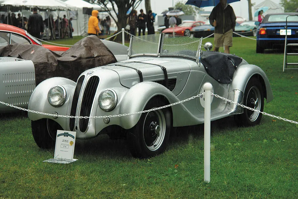 Food consisted of elegantly prepared endive and black forest ham sandwiches and sold at unholy prices along with Perrier water and champagne. I stumbled my way into (read: crashed) the auction tent which was open only to serious bidders with an extra $35 burning a hole in their white shorts. Inside was a wonderland of classic cars you could actually walk around and touch if you dared. If you accidentally adjusted your fedora at the wrong time  you might have just bid on a rare Austin Healy roadster worth more than your house and yearly salary put together.