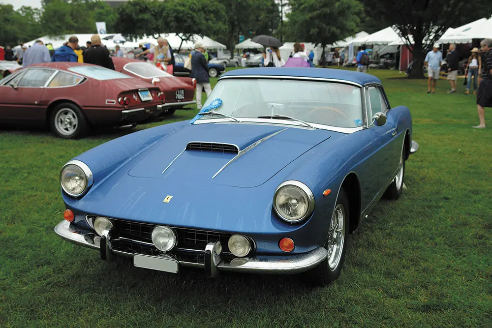 The parking lot was an event unto itself with many amazing vintage and modern classics to see and we’re not even at the event yet! The first big difference between the Road Devils show and the Greenwich Concours will hit you right in the wallet. Whereas the Road Devils show was free to stroll though, the Concours had a $50 spectator admission fee (yes folks, fifty dollars per person) After that initial kick in the wallet, the first thing you realize is that this even is held in a park, not a parking lot, and that there are beautiful views of the water all around. Unfortunately, the grass and bay views did little to lessen the, yet again, 99 degree unrelenting heat. And then you see them… cordoned off in large circles (that you are not going to cross) are groups of the most amazingly beautiful and incredibly rare European cars you will ever see: Ferrari, Lamborghini, Maserati, Porsche, Mercedes Benz, BMW, Alfa Romeo and a couple of makes that you never even heard of, that are so unique and beautiful that you might just plotz! (but please refrain from “plotzing” on the “event grounds”)
