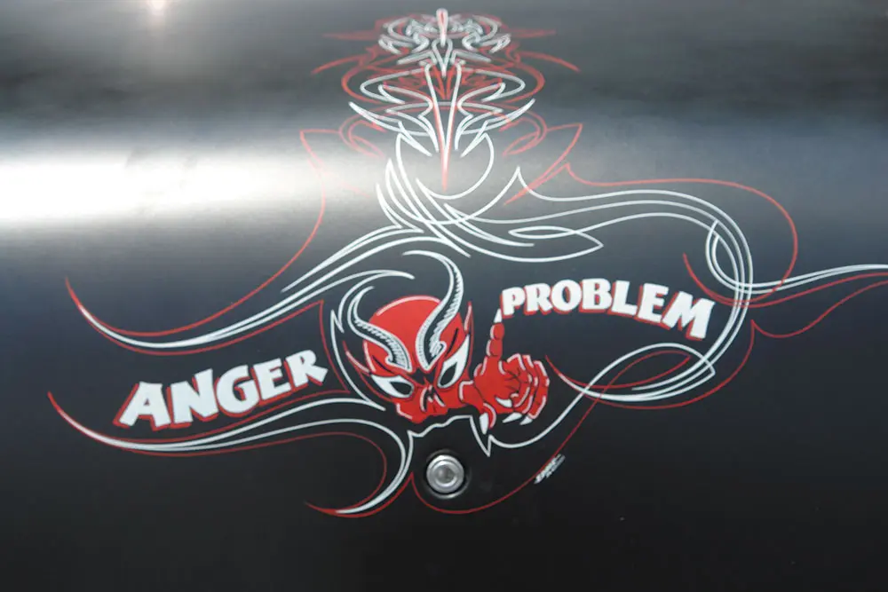 The vendors offered an amazing array of Kustom Kulture artifacts from magazines to short-brimmed hats, tiki heads, and posters. The girls, all of whom looked as stunning as bowling-calendar pinups in spiked heels and tattoos were selling hand-made kitch and jewelry. Hot dogs and Cokes are the cuisine of choice but if you play your cards right you might be able to get a “PBR” (Pabst Blue Ribbon), this show’s unofficial sponsor. I do believe I purchased the ultimate in Kustom Kulture kitch: A red metalflake-painted toilet seat cover with a ’40s pin-up girl provocatively posed in the center. (Don’t worry the pinup is old, but the seat is new) Upon seeing this work of art, there’s only one thing to say: “cool ”.