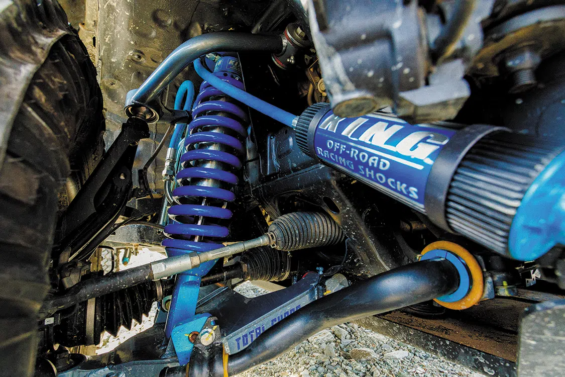 A. I love all the additions I’ve made, but my absolute favorite has to be the King Shocks/Total Chaos suspension system. The adjustability of the suspension provides unparalleled stability and control, and the longer travel allows me to navigate at higher speeds and handle rough terrains more smoothly. Plus, they add an amazing aesthetic with an aggressive look.