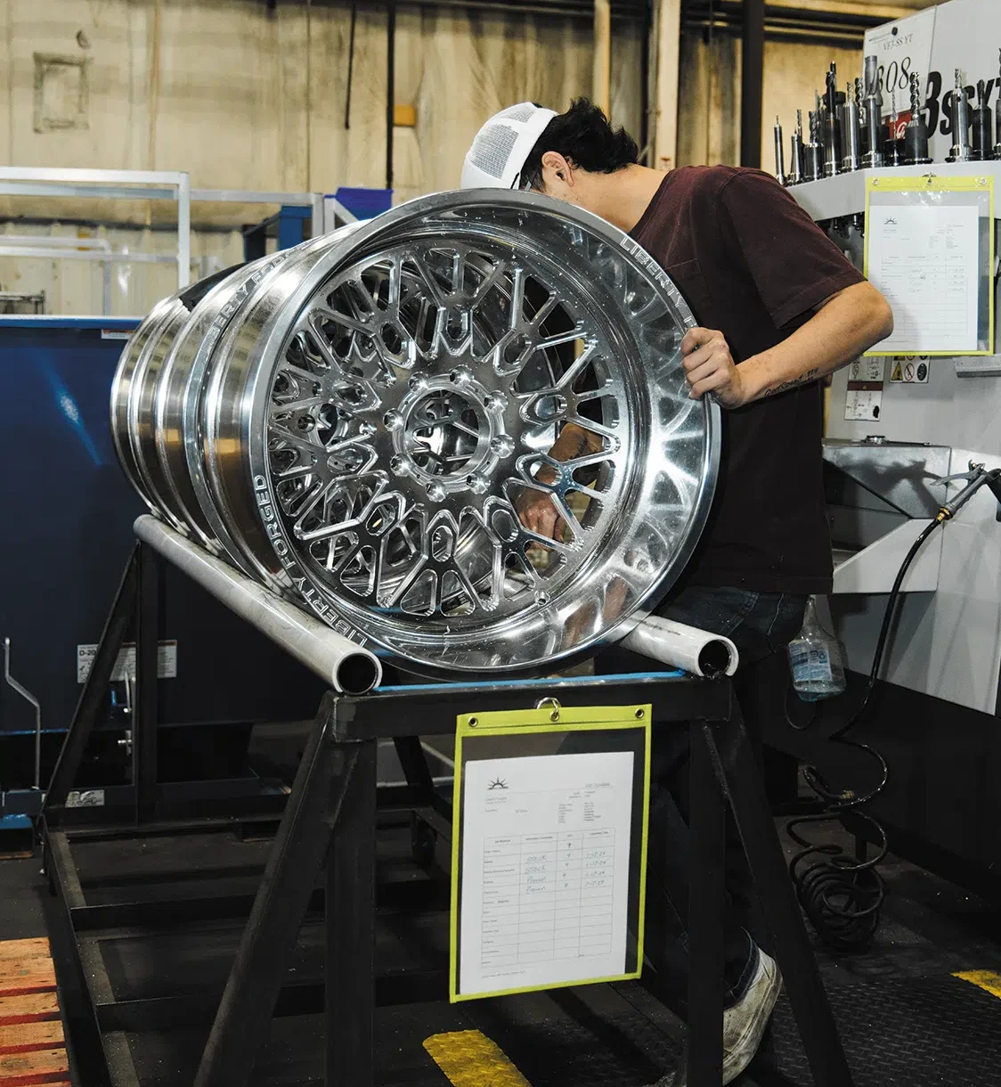 Liberty Forged owner, Steven, gave us an in-depth tour of the whole facility, showing us how the wheels are manufactured from a blank wheel all the way to getting a final polish and going out the door to a customer who came the day we were there. It was really cool to see the whole process these wheels go through and the end product go straight into a customer’s hands on the same day. That’s what we call “farm to table!”