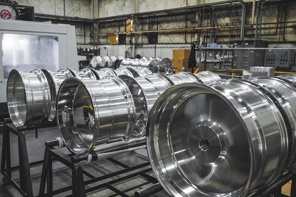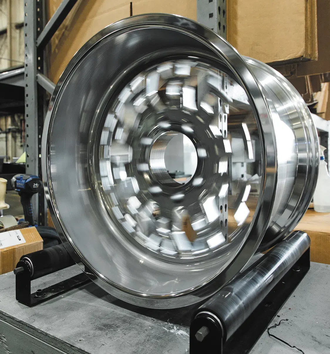 Here we see blanks in all different sizes being organized to go into production for customers that have already custom ordered their wheels. They go from these shelves, to the CNC machine, to get a design cut into them, to the polishing table to get a fresh out-of-the box shine, and out to you in a timely manner.