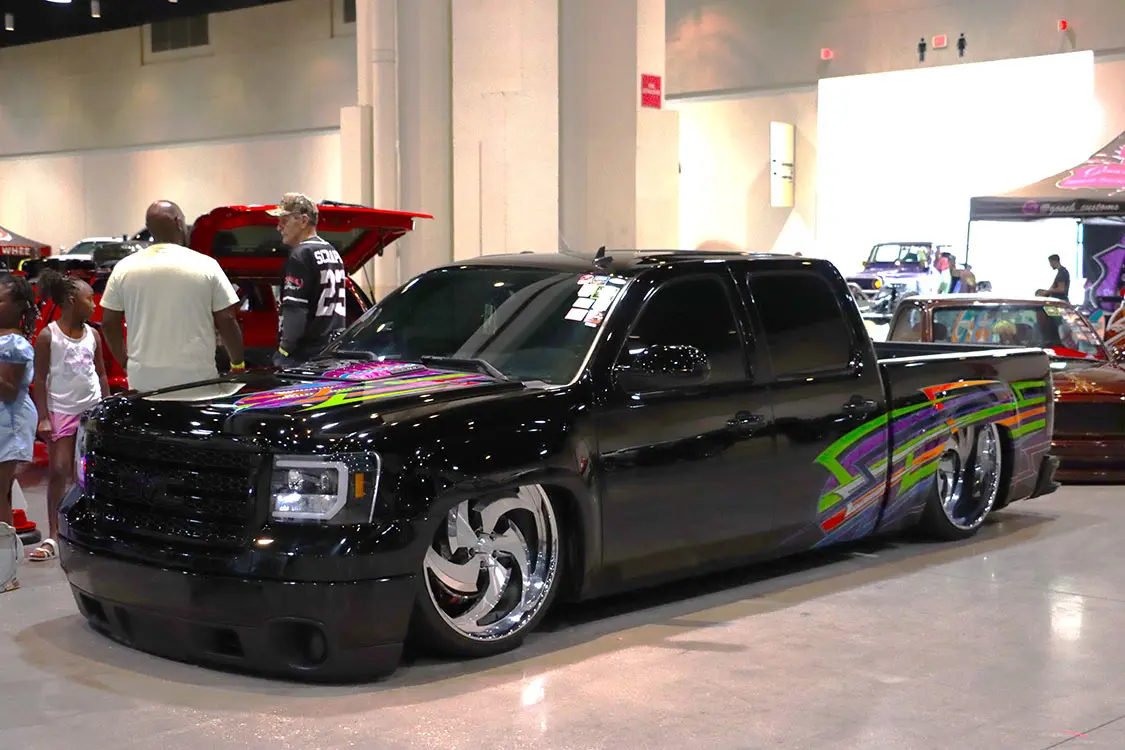 Those looking to put their show vehicles to the test, the stereo competition is the proving grounds to battle for the loudest and clearest sound signal awards, as well as an air bag/hydraulic hop off that takes behind the main stage. If neither of those attractions piques your interest, the cornhole tournament located in the lobby of the convention center has become a great alternative to vehicle-orientated events at the show. In between all that excitement, live performances from multiple bands, sets from DJ Get Low in the American Force booth, as well as entertainment from DJ Maze & Toast on the main stage provided extra value to the price of admission. Showgoers also had an opportunity to participate in an auction on Saturday just before the awards presentation to benefit Scrapin’ for a Cause— a great addition to the show that promotes giving back to the cruising community. Long story short, there was not a shortage of things to do and see all weekend long.