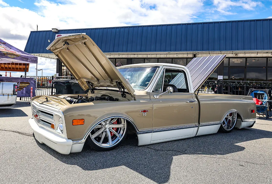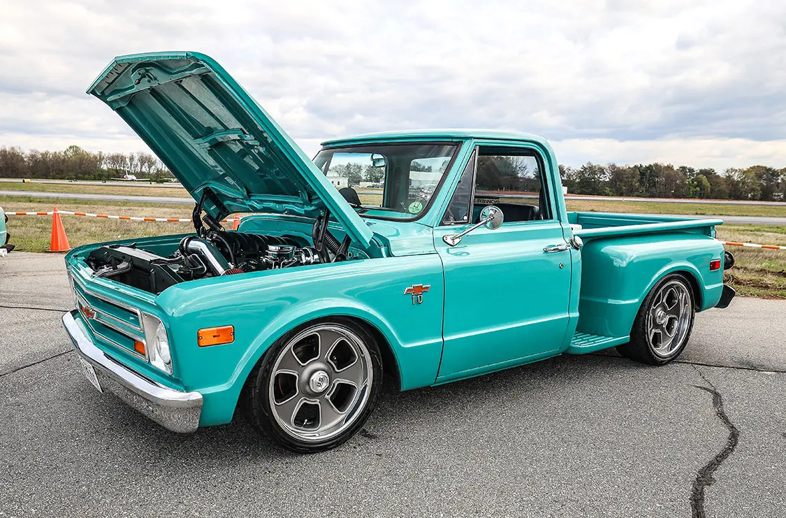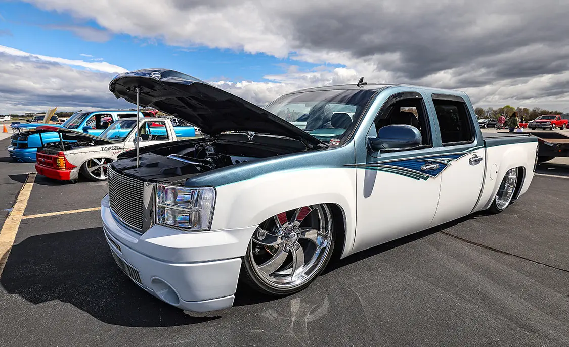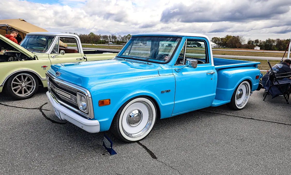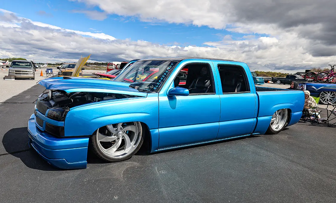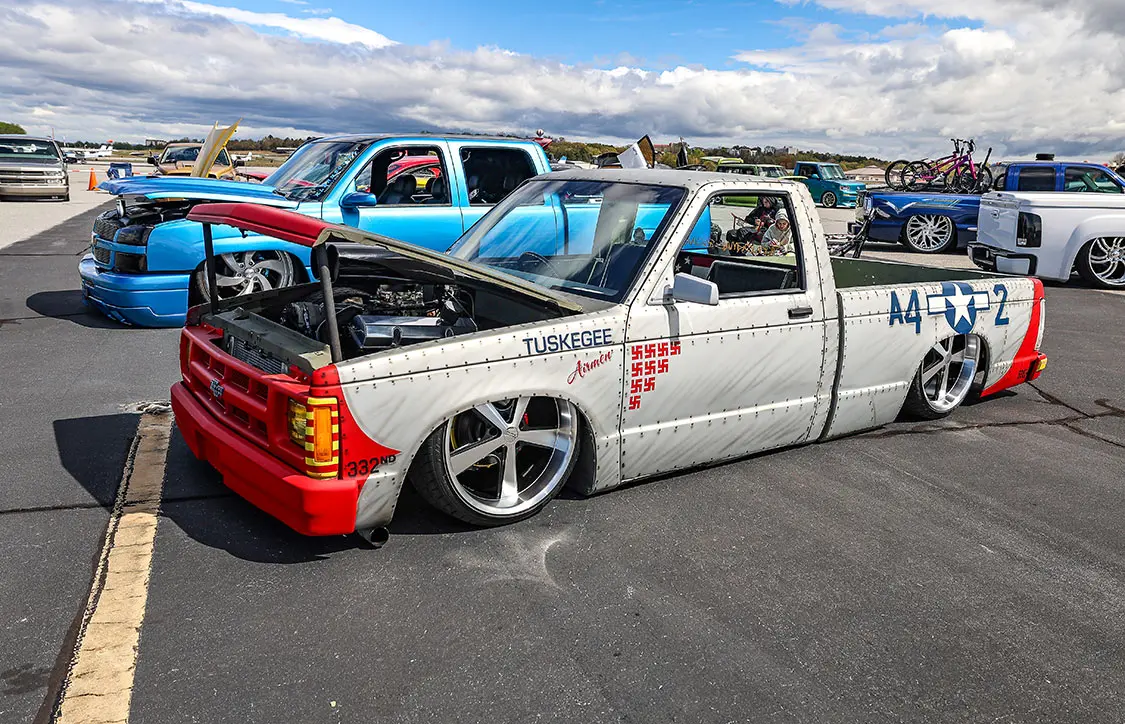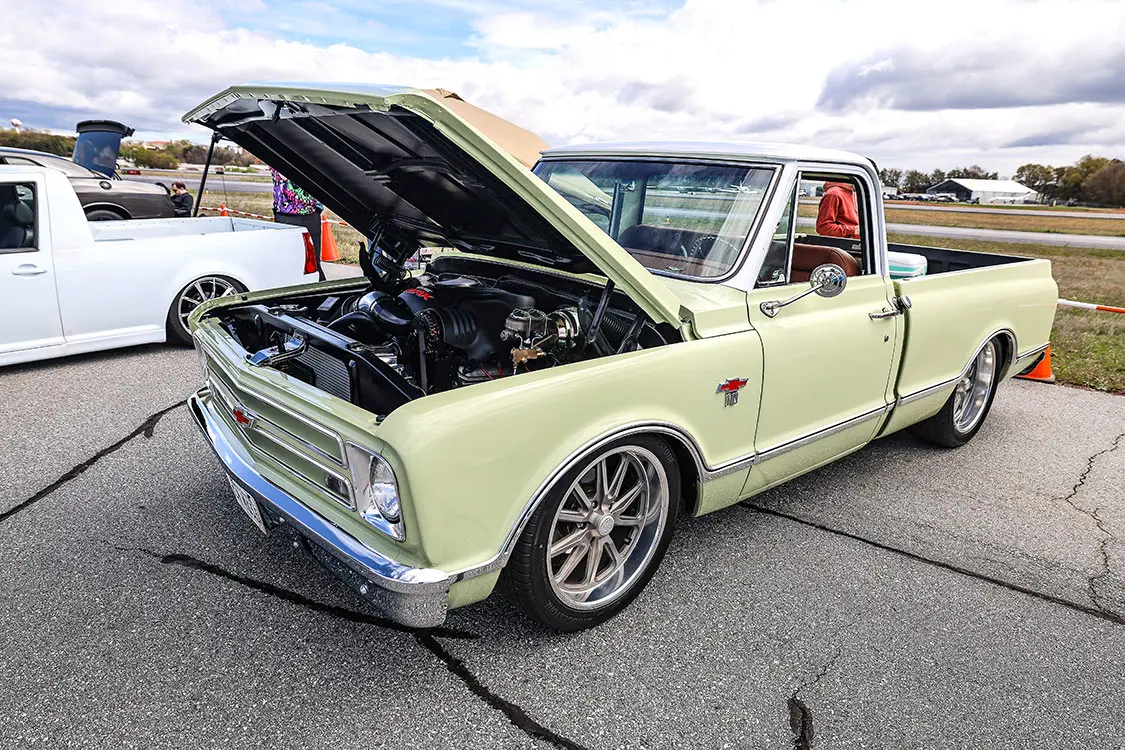 When the co-hosts of Custom Scene Podcast, Glenn Brown, and Don “Dizzy” Davis, got together and discussed putting on a show, they knew it had to be something cool. They made a trip over to the Greenville Downtown Airport in Greenville, South Carolina, to see if their venue would work. After seeing the location in person, they immediately knew that having cool trucks parked on the airport tarmac and the events and awards inside an airplane hangar would make for a cool layout.