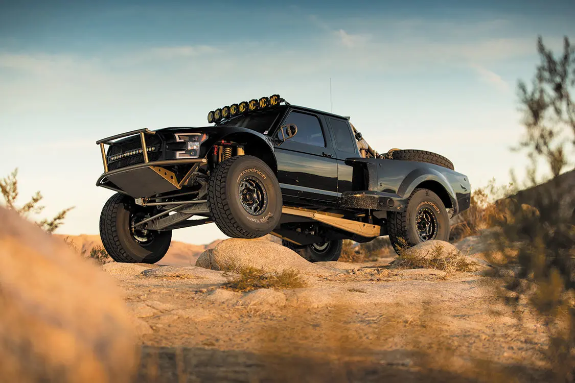 Whether its driving through the streets of Hesperia or going fast over the dry lakebeds of Johnson Valley, getting as much power to the ground is vital for this truck. So what better way to do so than to cram a stout 532ci Chevy big-block-based V-8 under the hood?