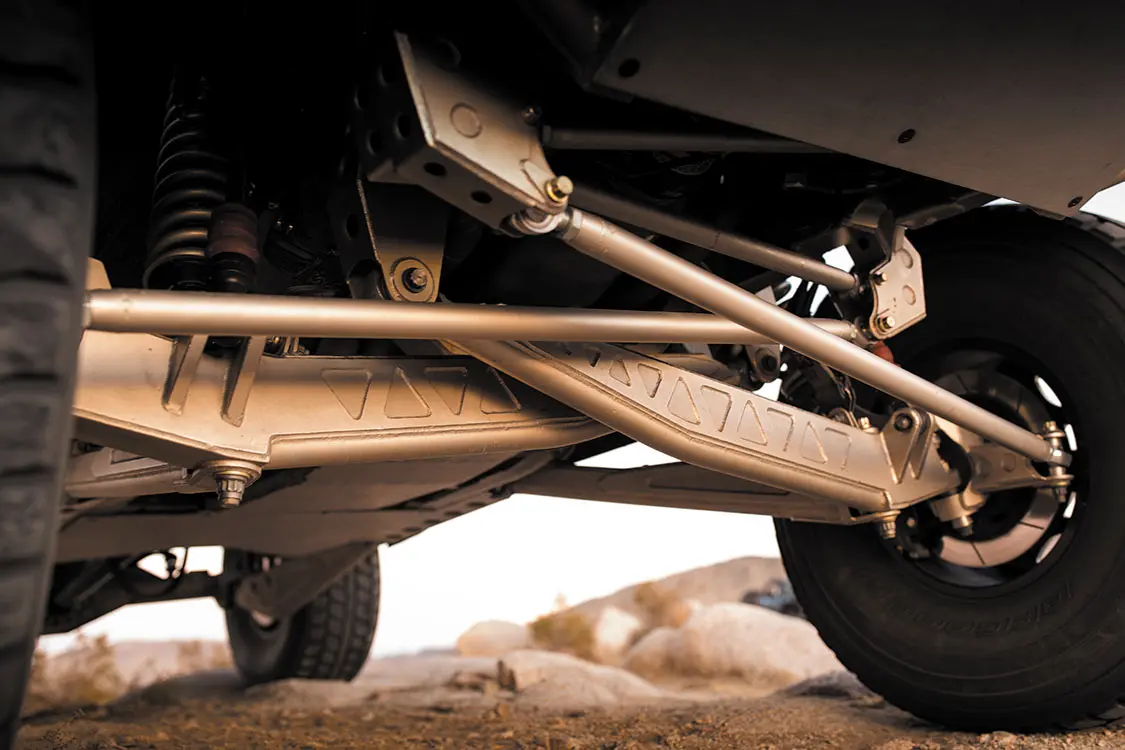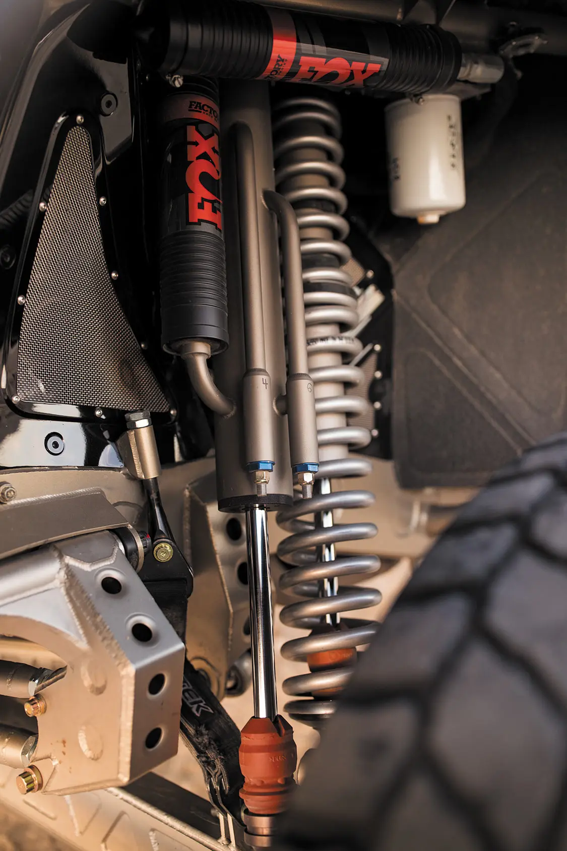 “Out back, 60-inch trailing arms and another set of Eibach springs and FOX shocks bump suspension travel up to an amazing 30 inches.”
