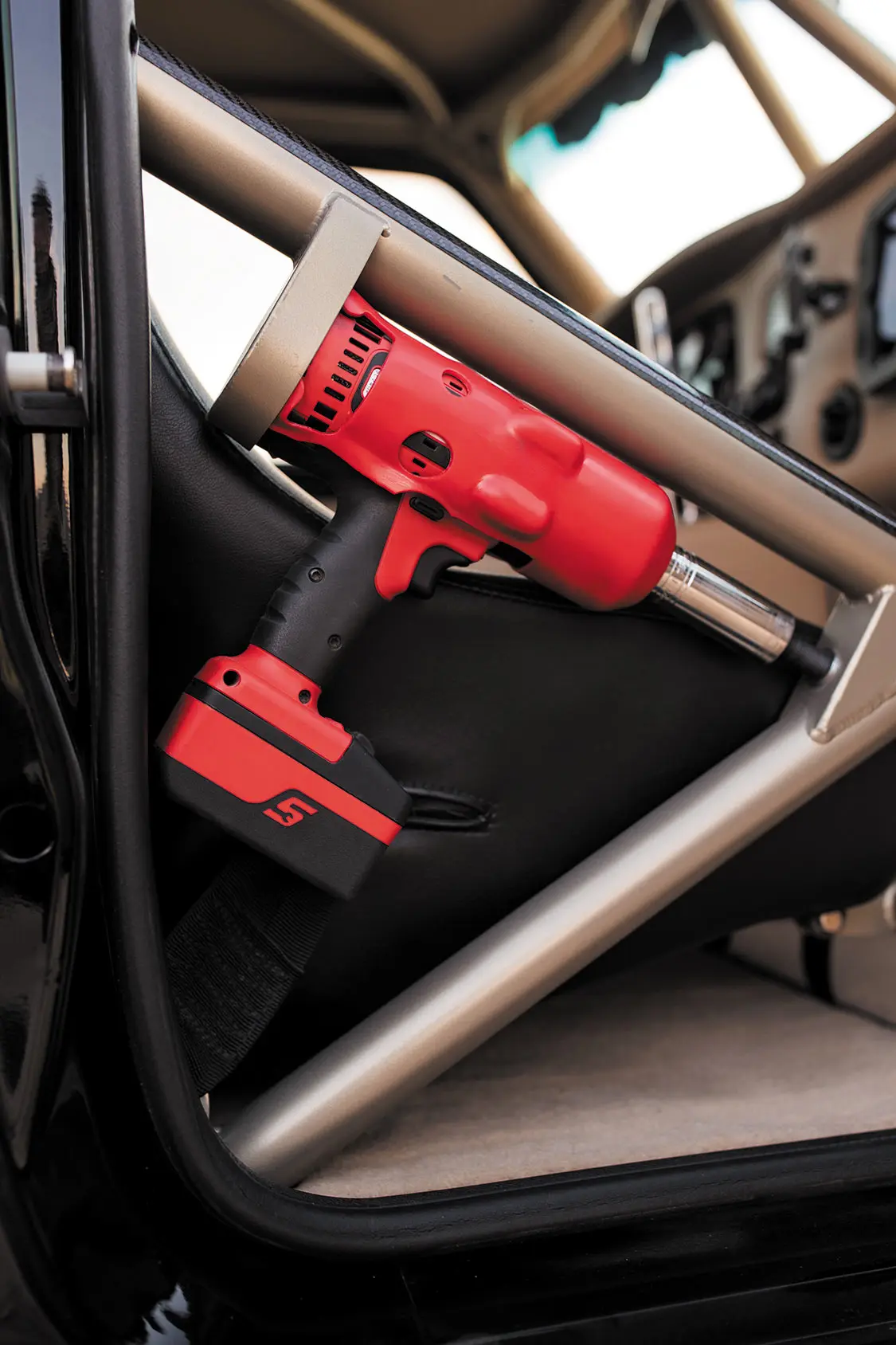 Giving the driver ultimate control of the truck’s direction is a MOMO steering wheel, while a B&M Pro Ratchet shifter makes easy work of manually shifting the truck from the center console. Gauges in the custom dash hail from both Speedhut and Fuel Air Spark Technology, while a full Rugged Radios push-button communication system with AlphaBass headsets make for easy driver and passenger communication when faced with the roar of the modified Chevy Big Block at full boar.
