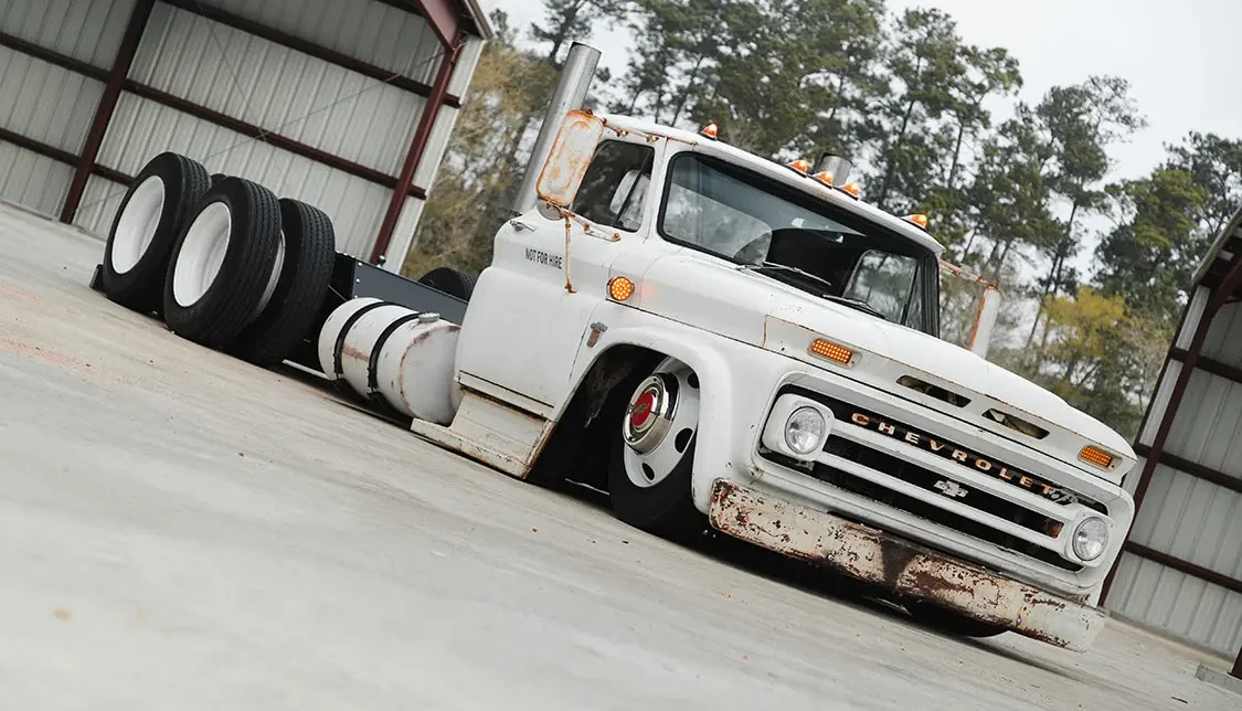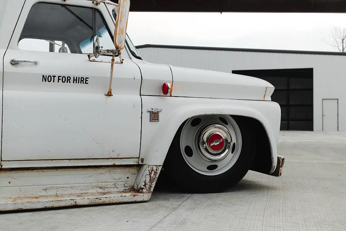 The latest to roll out of the shop is this amazing ’64 C60. Built as a shop hauler, it’s already attracting more attention than many of the rides it’s meant to carry! When aired up, the rig almost looks like it could have always looked this way, but once you get to staring (which can’t be helped), the differences between this and any other C60 before it become more obvious. Getting the truck to this stage has taken 1.5 years to date, with the majority of the work going into the chassis and drivetrain.