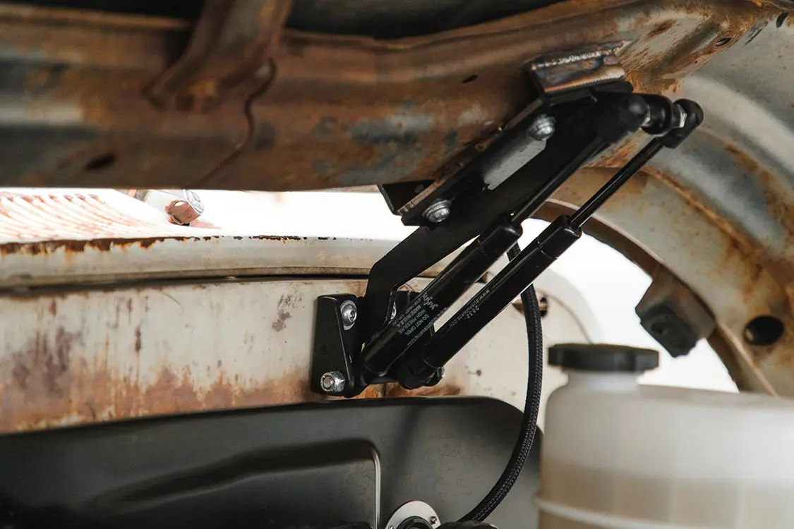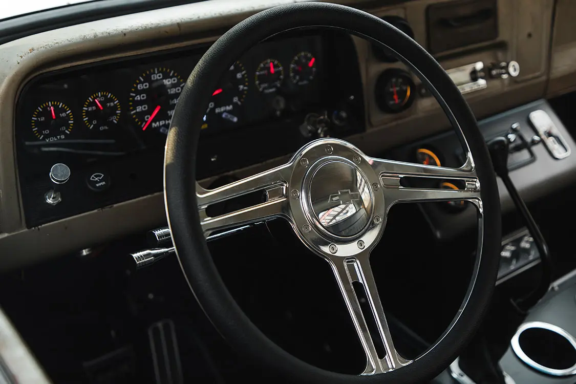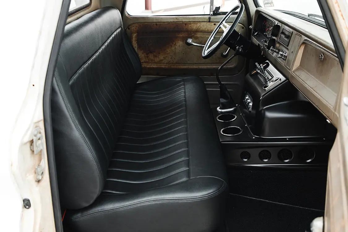 And, of course, the most important part of any long-distance hauler—the interior—had to be up to snuff in order to stay safe and comfortable at all times. To that end, a custom leather-wrapped bench seat from Snowden was a logical choice, with a Billet Specialties steering wheel sitting just before the Intellitronix instrumentation and providing full control of the truck. Finally, a custom center console was fabricated to house the A/C controls, shift lever, and air-ride switches.