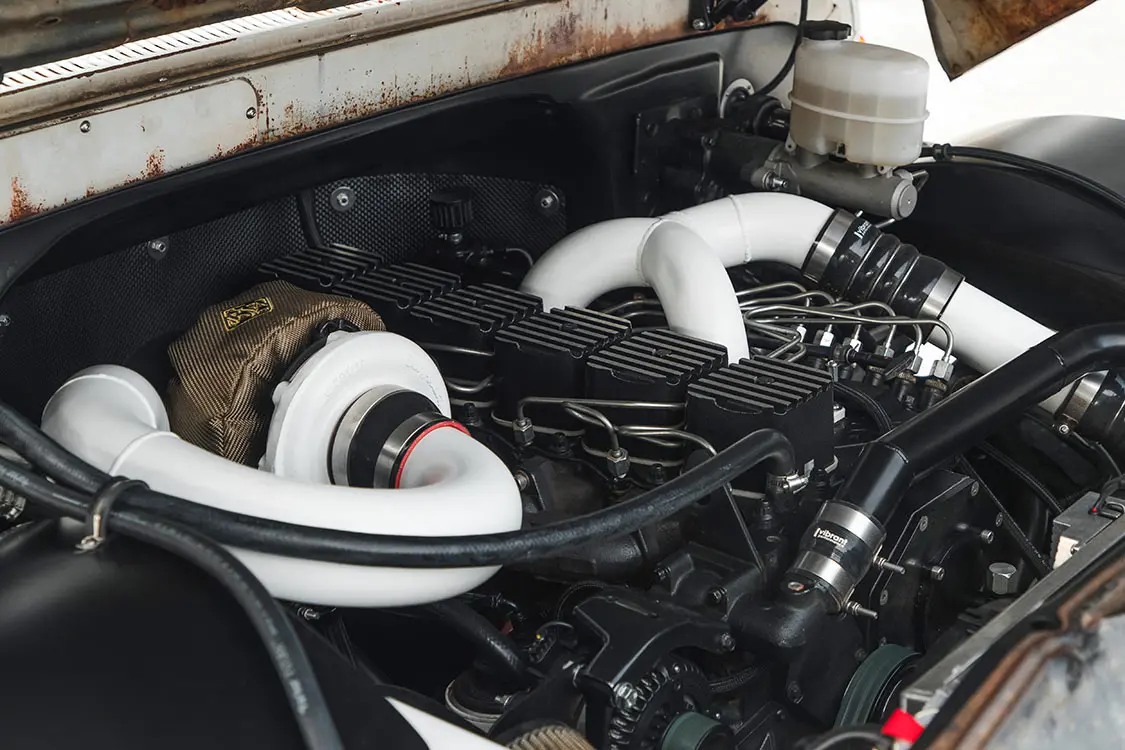 Power-wise, it just made sense to go with a torque-heavy diesel, so a heavily upgraded 5.9L Cummins was mated to an Allison 6-speed by using a Destroked adapter kit and standalone harness for an easy, plug-n-play solution. And since the C60 was meant to hit some long-distance shows (such as Lone Star Throwdown), it was equipped with a 45-gallon aluminum fuel cell to cut down on extra stops along the way.