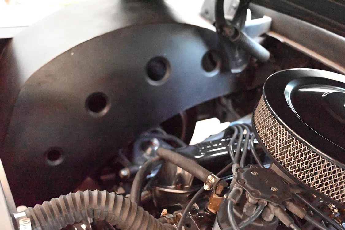 For stopping power, Shane added a disc conversion (Mustang II kit) in front and stock drum brakes in the rear. The master cylinder is Wilwood with a booster. All brake lines have been replaced.