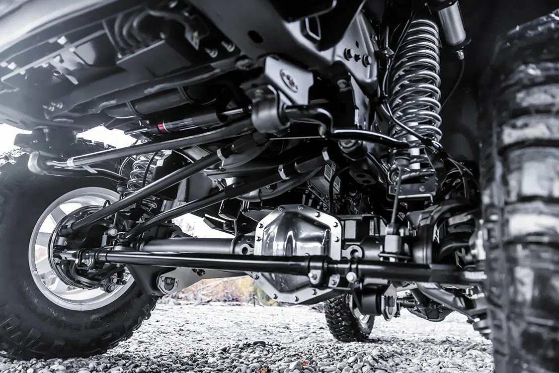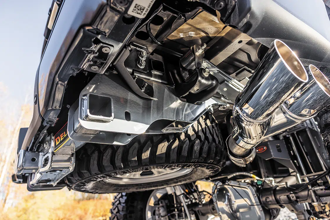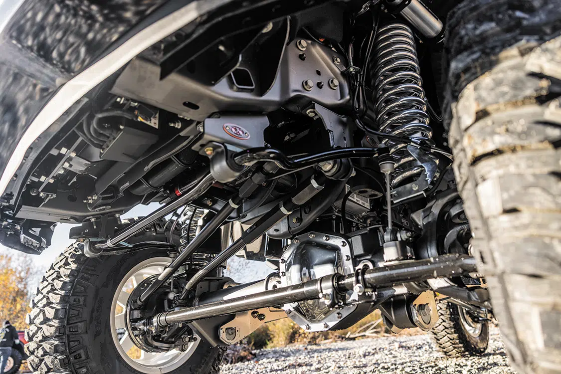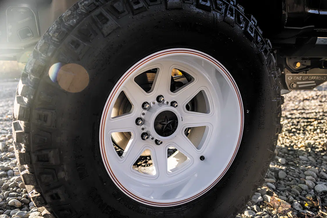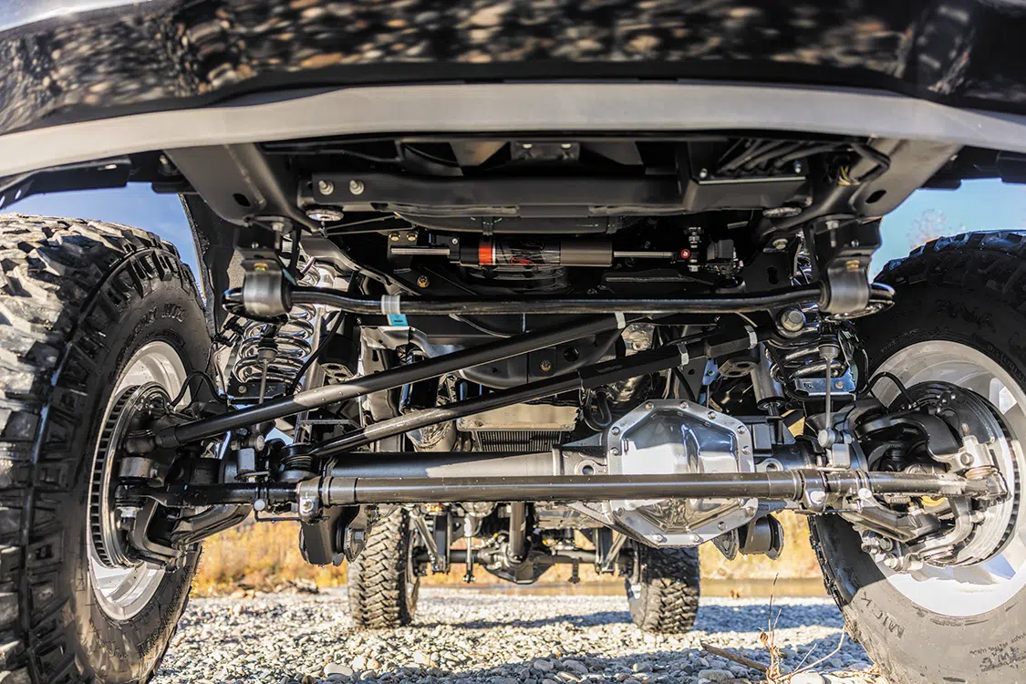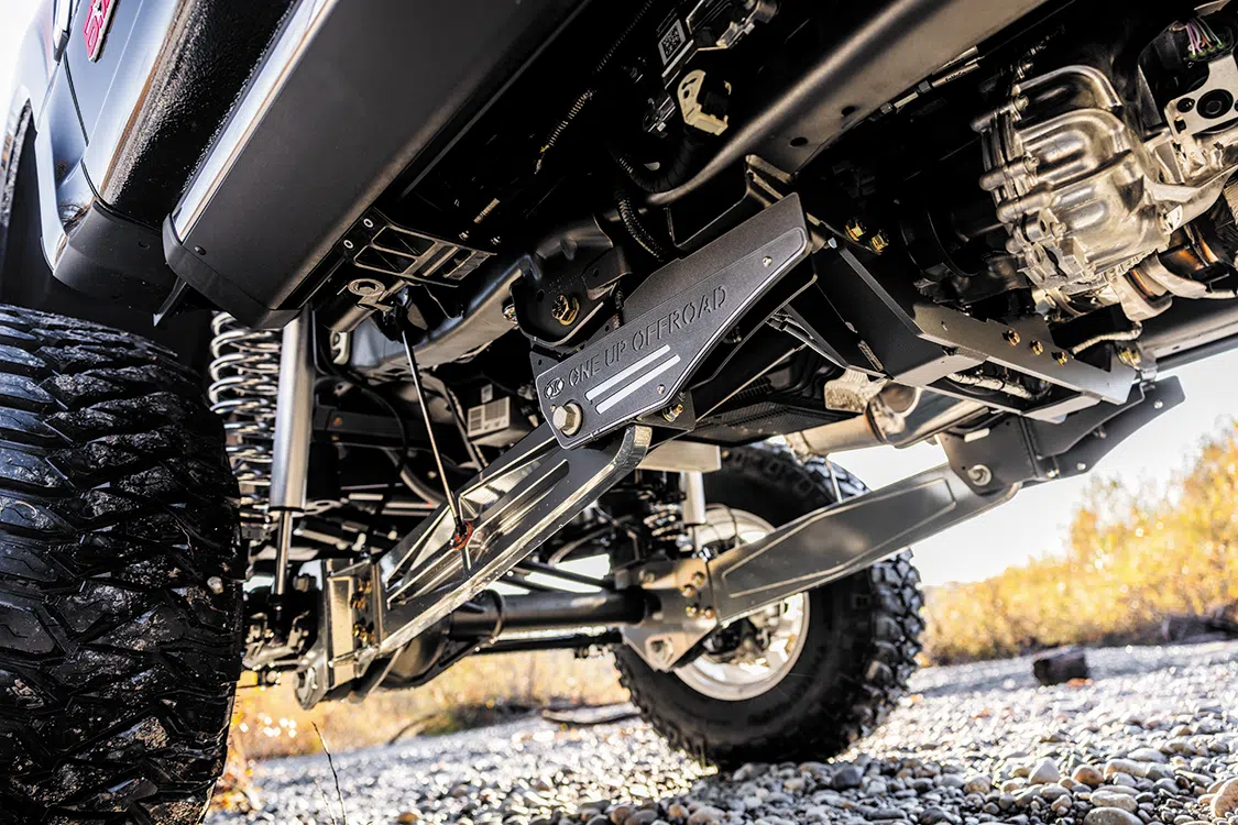 The foundation of any project is the frame, so Kyle began outfitting the factory chassis he had with an adjustable 7-to-9-inch lift kit from One Up Offroad. The kit is comprised of everything necessary to give the truck a commanding stance using components that work harmoniously together for the purpose of providing surprisingly excellent ride quality—especially for a lift of this stature.