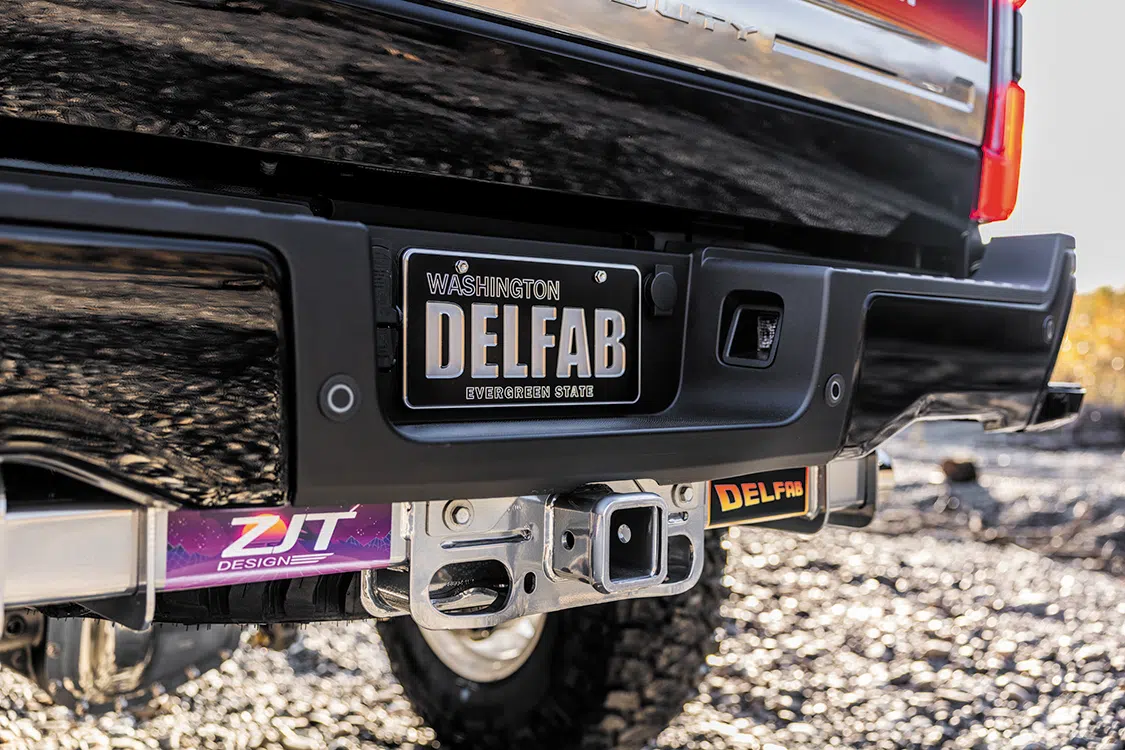 A few custom touches were made by smoothing and painting the sidestep pocket, and then positioning the actual step upward and inward to make it less noticeable. The same smooth-and-paint treatment was given to the corner step on the rear bumper to blend it in as much as possible, and the running boards were shortened for the same reason. Aside from those custom accoutrements, there are plenty of high-end Platinum options present including the keyless entry handle, LED taillights, power tailgate, and all the badging that demarcates the truck from other trim levels.