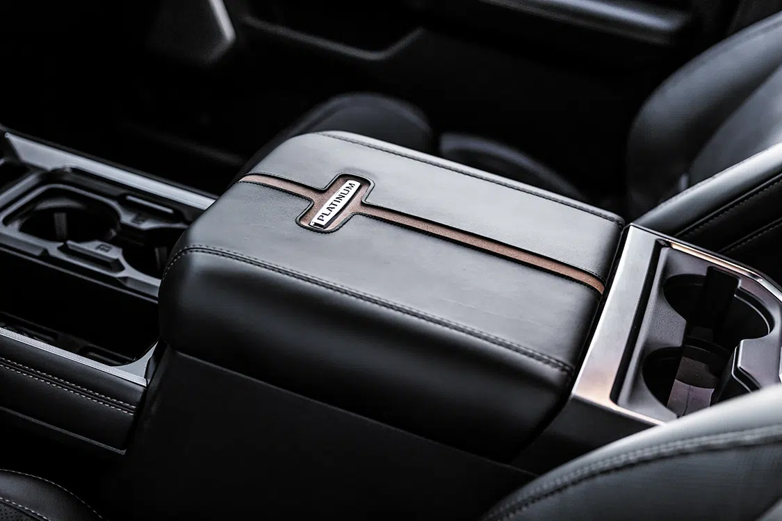 Aside from those custom accoutrements, there are plenty of high-end Platinum options present including the keyless entry handle, LED taillights, power tailgate, and all the badging that demarcates the truck from other trim levels.”