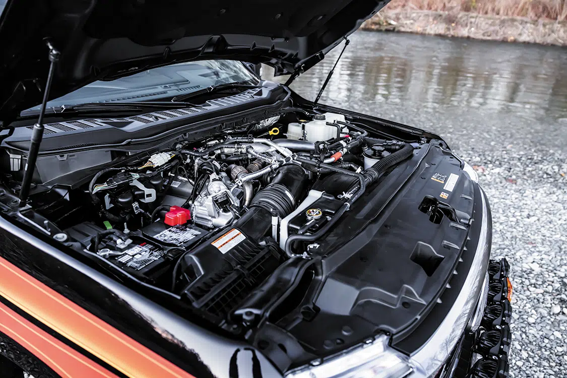 The entire front-to-rear suspension package was installed and test fit, and once Kyle was happy with how it all went together, the entire chassis, including every single bolt and bracket, was blown apart and sent to Powdercoating Inc. in Mukilteo, Washington, for a black and chrome two-tone finish. The reassembly process was smooth and satisfying, especially after the inclusion of the 20×12 American Force Ridge CC wheels wrapped in Mickey Thompson Baja Legend MTZ rubber. With a heavily upgraded chassis now ready to roll, Kyle was then able to move on to the next phase of the project, which was arguably the most important.