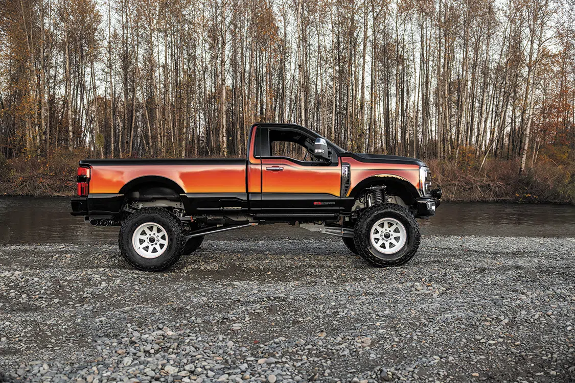 Not all truck builds are quite the same. Sometimes, the desired result is an obvious full-blown custom creation; other times, the truck is designed to be a little more subtle. For the sake of sparking discussion, it’s safe to say that this 2023 Ford F-350 Super Duty rides the line of both worlds but slightly teeters toward the latter category. At first take, most onlookers might only see a brand-new truck with a big lift and a few accessories hanging off it—fair enough. Those who really do know their Ford trucks and can differentiate between Ford’s modern trim packages represent the slim segment of enthusiasts who understand that this truck, in this form, should not even exist.