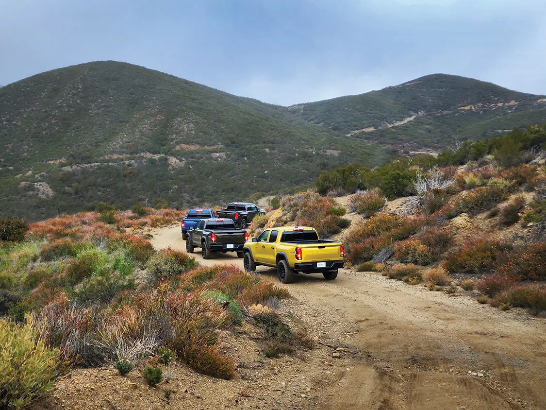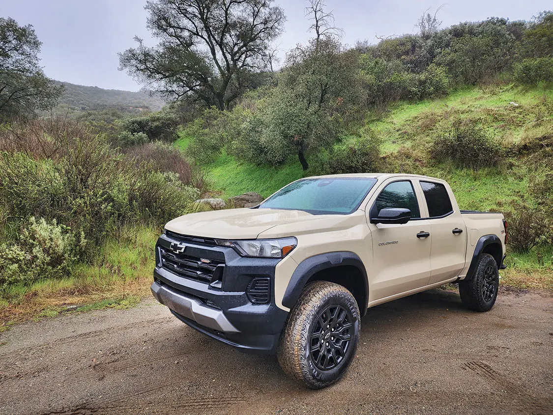 After nearly nine years on the market, the midsize Chevrolet Colorado pickup gets a revamp—and it’s a major one. The 2023 Colorado lineup boasts an exterior redesign, a more powerful engine, new technology, and significant updates throughout its new crew cab/short box body style. We took Chevy’s new Colorado Z71 and the first-ever Colorado Trail Boss out for a day of soggy, cold on- and off-road testing near La Jolla, California, to see if they’re setting the bar high for other manufacturers.