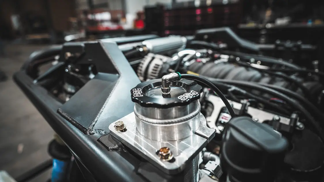 The engine also features GM Factory 1.6 ratio rocker arms with upgraded trunnions, Brian Tooley Racing 0.83-inch wall hardened pushrods, a FAST LSXR LS3 Intake with102mm drive-by-wire throttle body, Bosch 52-pound USCAR fuel injectors paired with a Holley Terminator X fuel injection system and FAST billet fuel rails, and a Callies Compstar 4340 forged 4.125-inch stroke steel crank, which has been internally balanced front and rear and fitted with a 58x reluctor wheel. Additional components include Callies Compstar 4340 forged H-beam 6.125-inch rods, ARP 2000 Rod Bolts, Wiseco forged pistons with anti-friction coating and GFX rings, and a Comp Cams hydraulic roller lifter cam featuring a 0.627/0.632-inch lift and 243/251 duration rating at a 0.050-inch lift, and a 114 lobe separation angle.