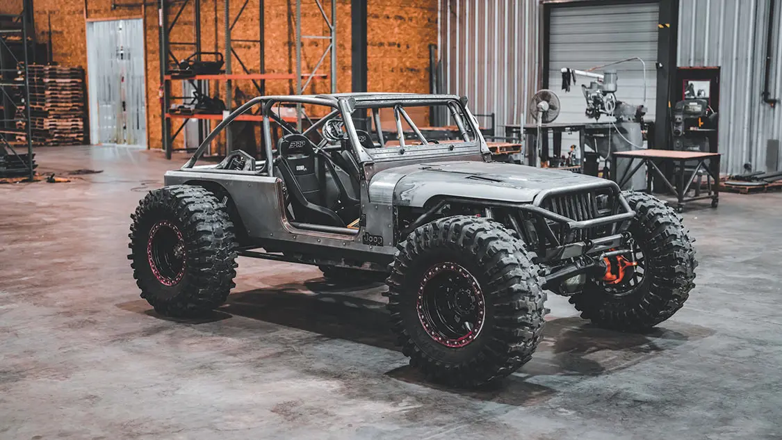 The custom interior of the Jeep follows suit with PRP seats and harnesses, a custom dash and center console, handmade grab bar, and laser etching with custom “El Jefe” engravings throughout. A key fob push-button start, Holley EFI Pro Dash instrumentation, Switch-Pros panels, and a JOES Racing 12-inch drag racing steering wheel are just a few of the extras featured inside. Of course, it wouldn’t be an off-road-ready rig if it weren’t for the custom rollcage, Rugged Radios 696 Plus communication system, and MotoBilt mounting panel for a Milwaukee PACKOUT system.