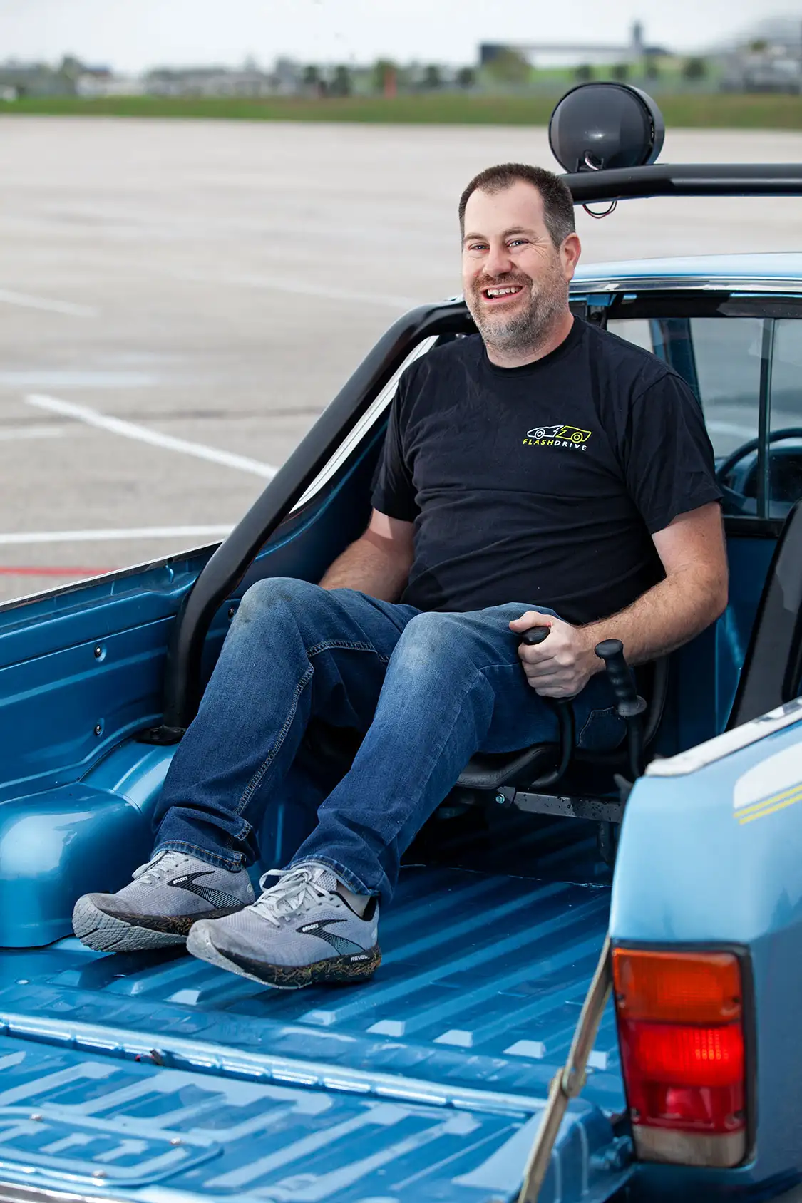 We met the Flash Drive Motors team in the city of Coupland in the Lone Star State. They are led by brothers James and Dan Fleischman, who are passionate restorers and electric vehicle enthusiasts. They’ve definitely brought a unique twist to the classic Subaru ‘pick-up that’s not a pickup’. The Fleischmans’ connection to the Brat is deeply personal. Their father taught them to drive in one, and they continued to use it through high school and college. When Flash Drive Motors decided to venture into the EV space, the Brat seemed like the perfect candidate for their initial build. The goal was to create something unique and pay homage to their father’s legacy.