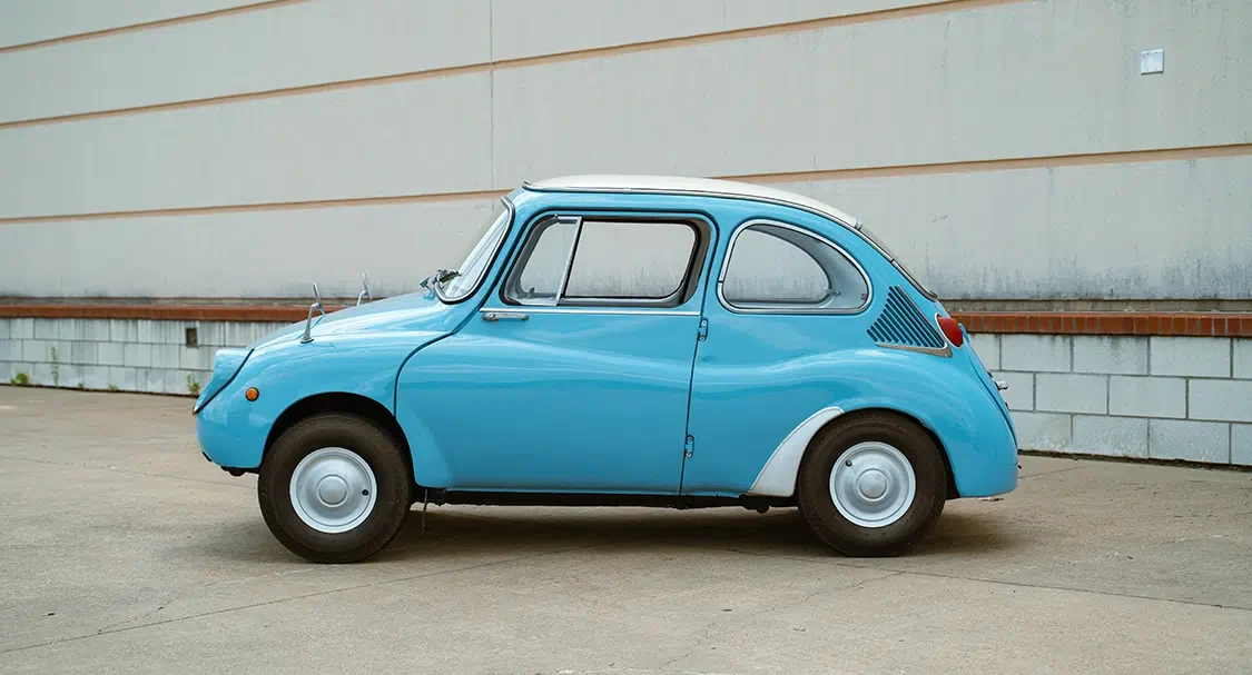 The Subaru 360, introduced as Subaru’s initial vehicle and a pioneer in Japan’s Kei car segment, was noted for its unique design tailored for affordability and urban utility. Originating in 1955 when restrictions limited Kei cars to engines of no more than 360 cubic centimeters, the Subaru 360 quickly became a staple in this category. Its design included several features that were quite advanced for its era and set it apart within the Kei car market. One of the notable aspects of the Subaru 360 was its lightweight construction, which was critical given its small engine size. The car utilized a thin steel monocoque chassis combined with a lightweight fiberglass roof, which significantly reduced its overall weight. This design choice not only enhanced fuel efficiency but also compensated for the car’s modest power output from its 356cc two-stroke vertical-twin engine, which produced only 16 horsepower. Furthermore, the Subaru 360 was equipped with a sophisticated suspension system, featuring independent torsion bar suspension on all four corners. This provided a smoother ride than what was typical in many other small cars of the time. Additionally, the vehicle was designed with unique finned brake drums that were mounted directly onto the 10-inch steel wheels, an arrangement that helped with both weight reduction and brake cooling. Overall, the Subaru 360 was an ingeniously engineered vehicle that combined cost-effectiveness, practical engineering, and innovative features to dominate the Kei car market from 1958 through 1971, with nearly 400,000 units sold. These characteristics ensured its success and enduring legacy within the automotive industry.