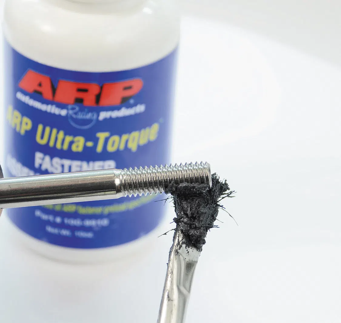 Needless to say, it’s important that the lug nuts be properly torqued to apply the necessary clamping load. In addition to the threads being clean, applying ARP Ultra-Torque fastener lubricant ensures getting between 95-100% of the desired preload on the first “pass” of the torque wrench. Other lubricants have been found to be inconsistent, and require several tighten/loosen/tighten cycles to mitigate friction.