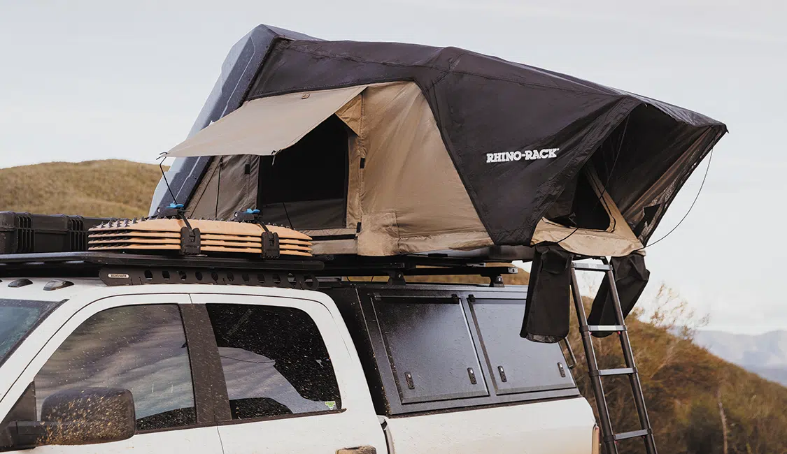 Ready to elevate your camping game? Look no further than the lightweight Rhino-Rack hard shell rooftop tent, tipping the scales at a mere 139 pounds. With the ability to carry up to 44 pounds of gear on top, this rugged beauty has the capacity to cater to all your expedition needs. Get ready to snooze in style on the luxurious 70mm high density mattress as you bask in the thrill of the great outdoors. Need to hit the road? No worries! The convenient bedding storage feature allows you to keep things tidy and secure during transit and storage. With internal storage pockets and boot bags, you’ll have your essentials neatly organized at all times. Rain won’t dampen your spirits either, thanks to the thermally lined 210D fly offering a 2,000mm water head rating. Gear up, embrace the adventure, and let the Rhino-Rack hard shell rooftop tent be your inviting home away from home!