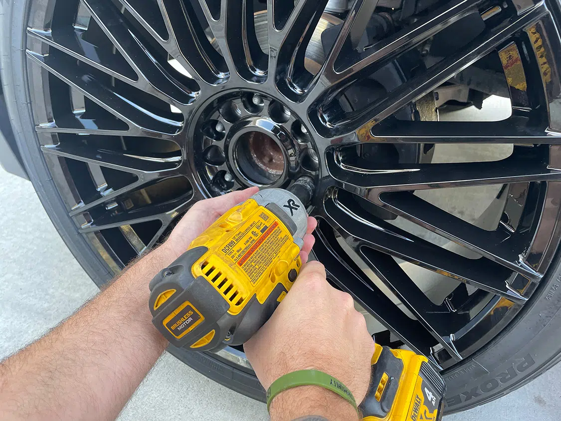09. Now we can use the impact gun to fully remove the lug nuts and pull of the original wheel.