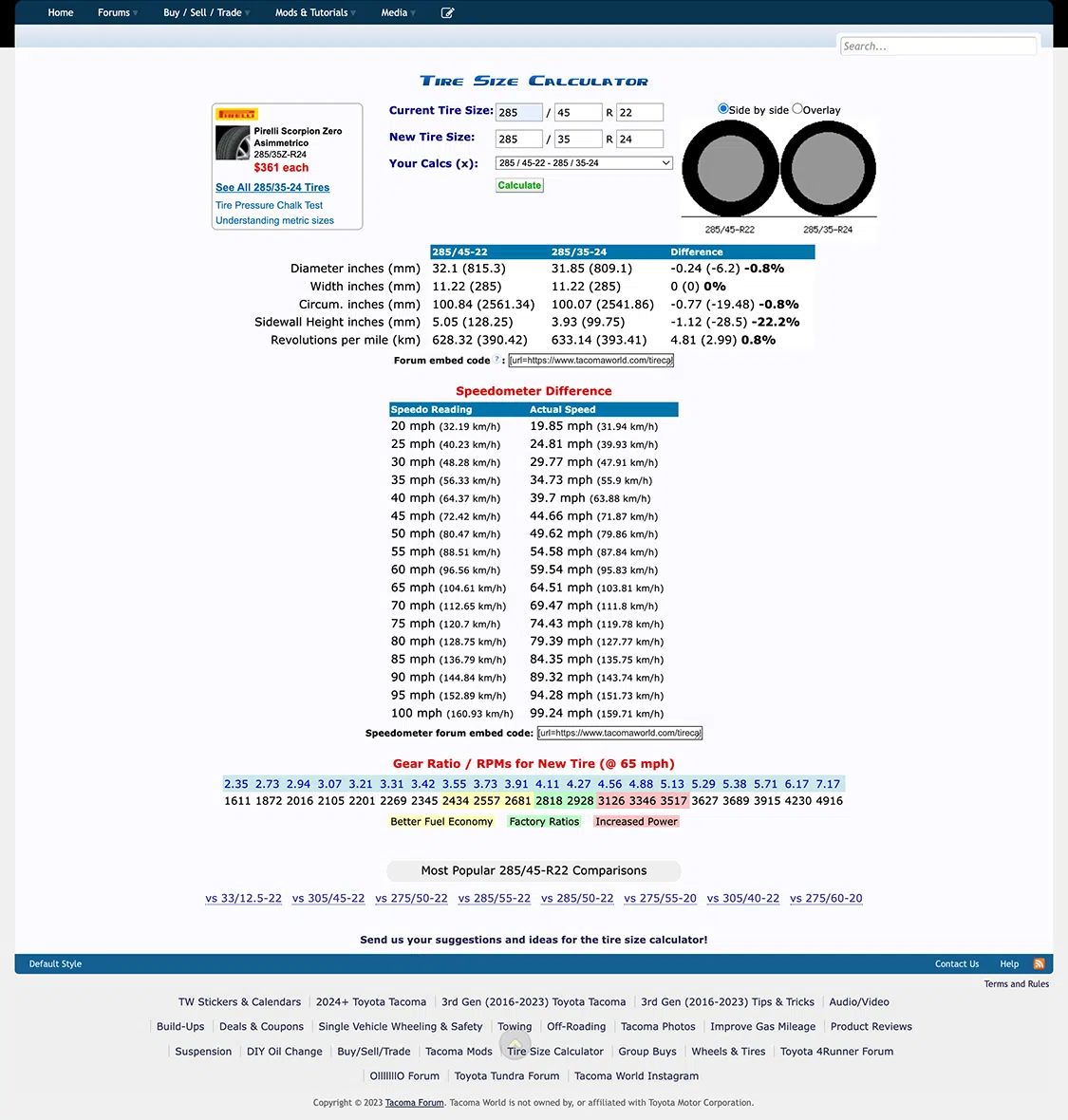 03. To ensure compatibility, we employed the tire size calculator from Motortopia.com. This powerful tool facilitated matching the new 24-inch wheel-and-tire combo to the factory-installed 22-inch setup.