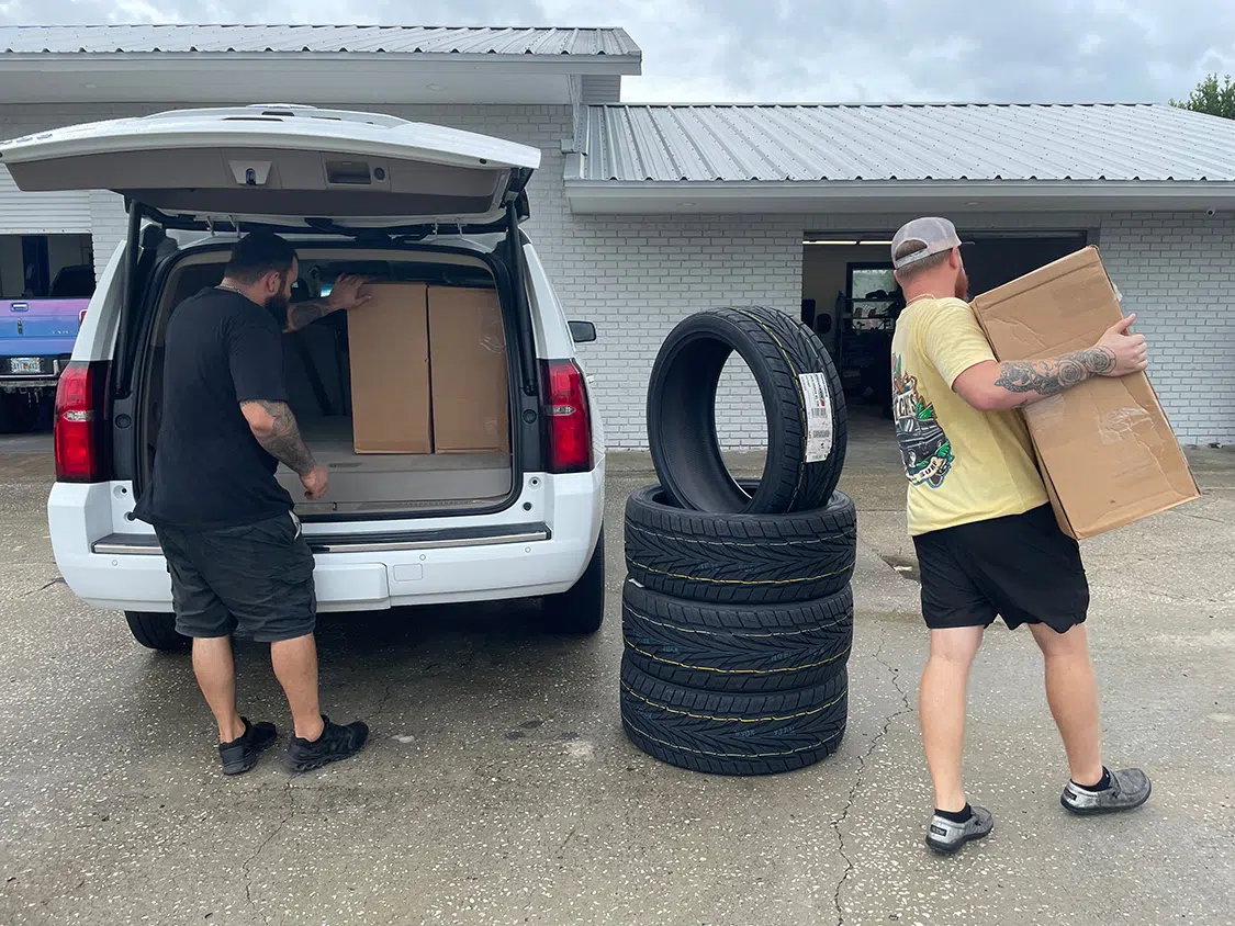 06. With the current wheel-and-tire combo picked and ordered, we headed over to Exclusive Offsets for the mounting and balancing process. Be sure to pick a reputable facility to ensure your wheels and tires are properly mated. You will regret it if they do not balance them correctly or if they scratch you brand new wheels.