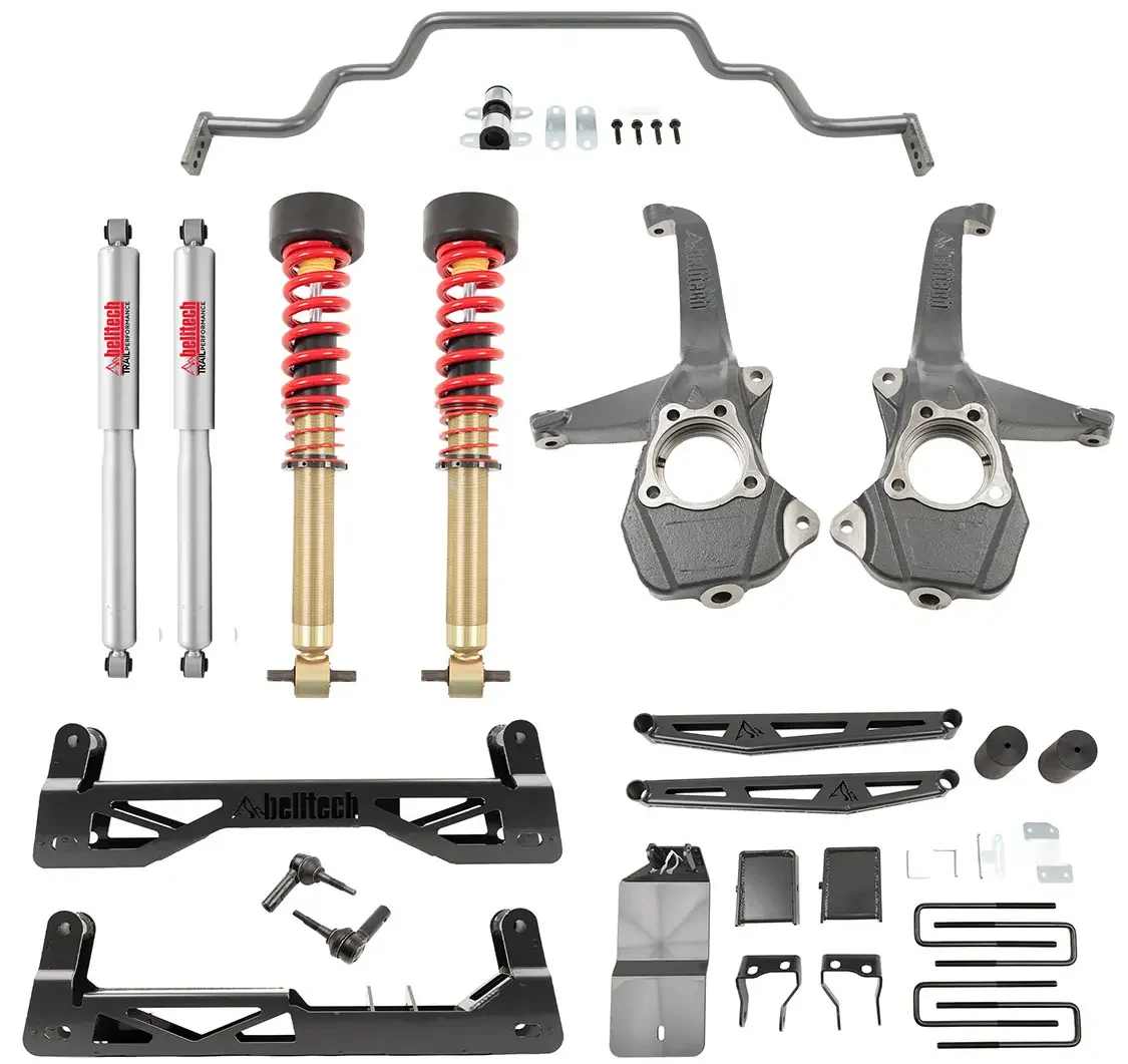 Upgrade your Silverado or Sierra with a precision engineered Belltech 6-inch lift kit to guarantee you can navigate all terrains on your next journey. This bolt-on kit contains ¼-inch thick steel brackets for strength under the toughest conditions, along with height adjustable coilovers and a 1-⅜-inch diameter front anti-sway bar for added stability. Belltech stands behind its product with a limited lifetime warranty.
