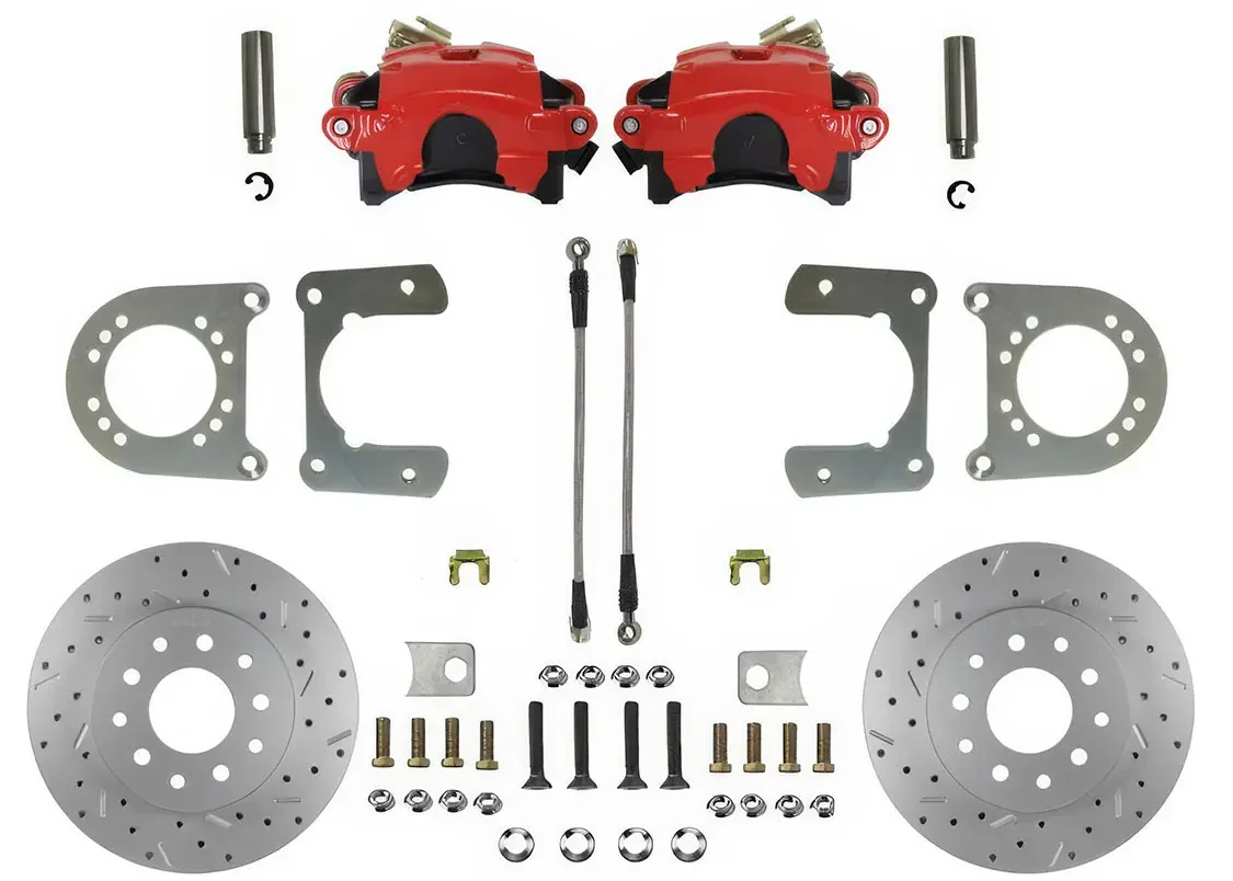 Upgrade your 5-lug C10 truck to rear disc brakes with ease! Leed Brakes offers several rear disc brake kit options for your C10 truck, including XDS rotors, MaxGrip XDS rotors or MaxGrip red or black powdercoated calipers. All C10 kits directly bolt-on to the factory rear axle. Leed’s two-piece mounting design gives you the flexibility to orient your brake caliper in three positions, which helps with additional clearance of most aftermarket suspension and frame modifications.